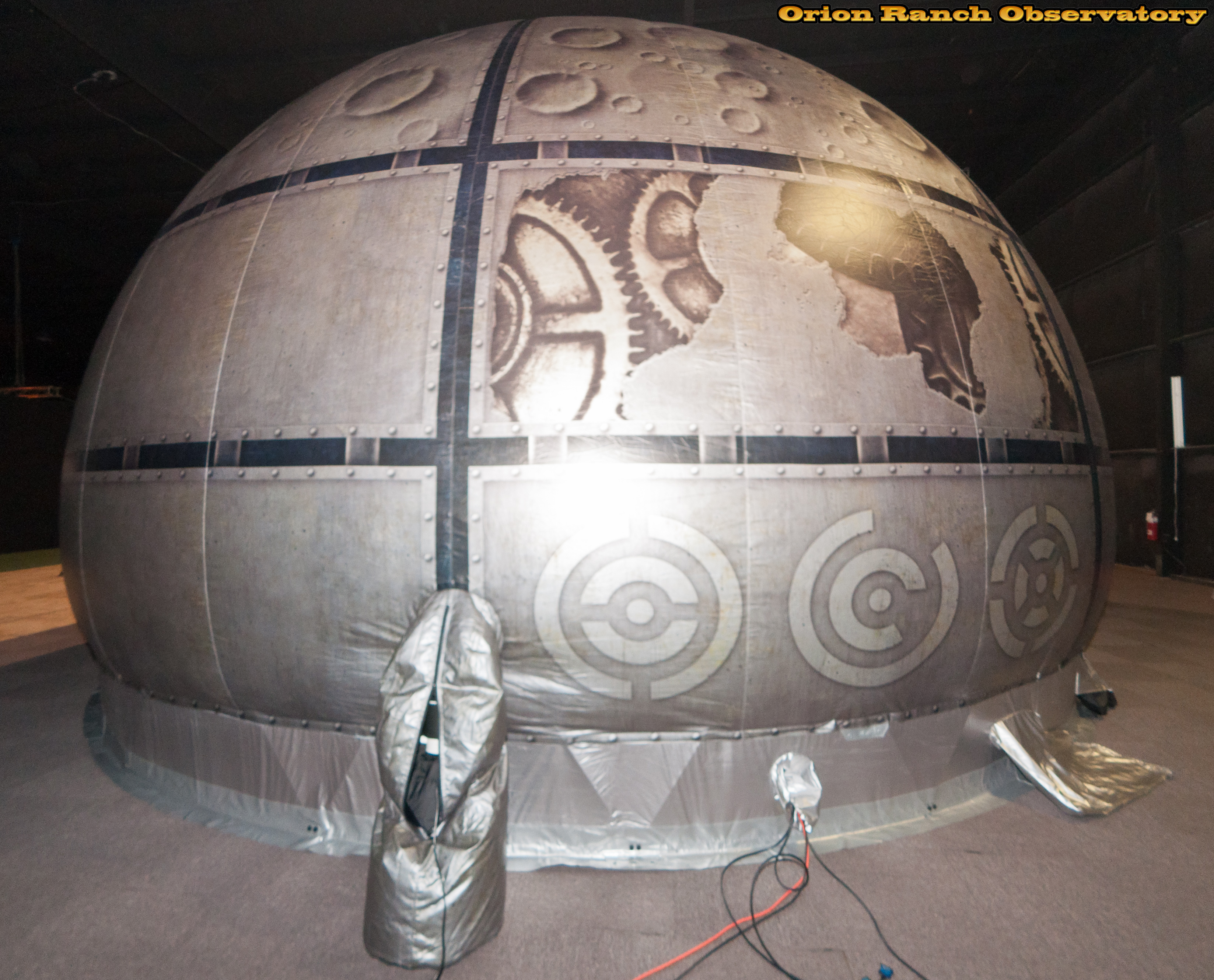 Various views around the planetarium dome, showing the air system that keeps the dome taught on the geodesic framework to keep the interior spherical. Some nice detail with the constallations and various other decorations.