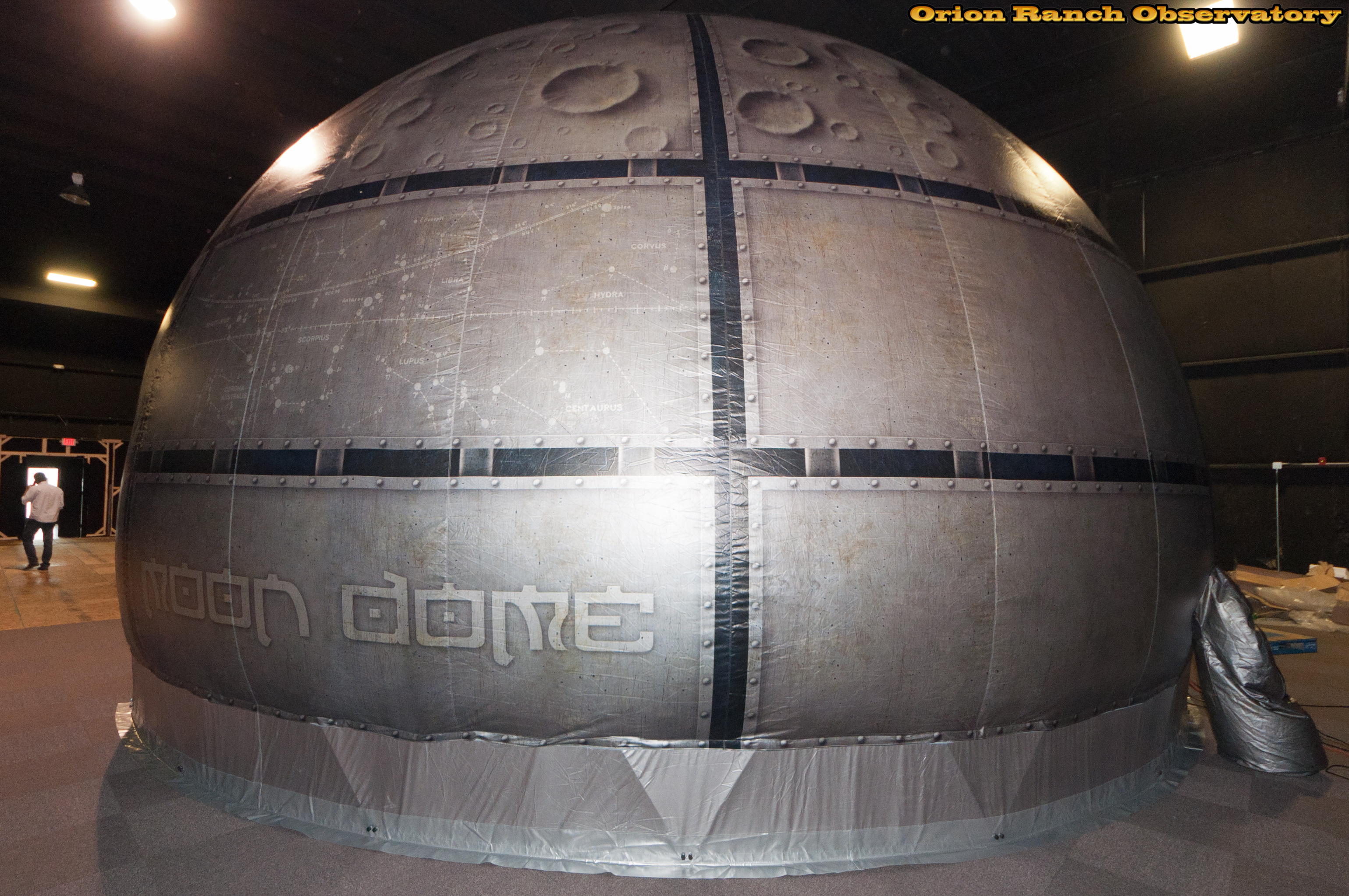 Various views around the planetarium dome, showing the air system that keeps the dome taught on the geodesic framework to keep the interior spherical. Some nice detail with the constallations and various other decorations.