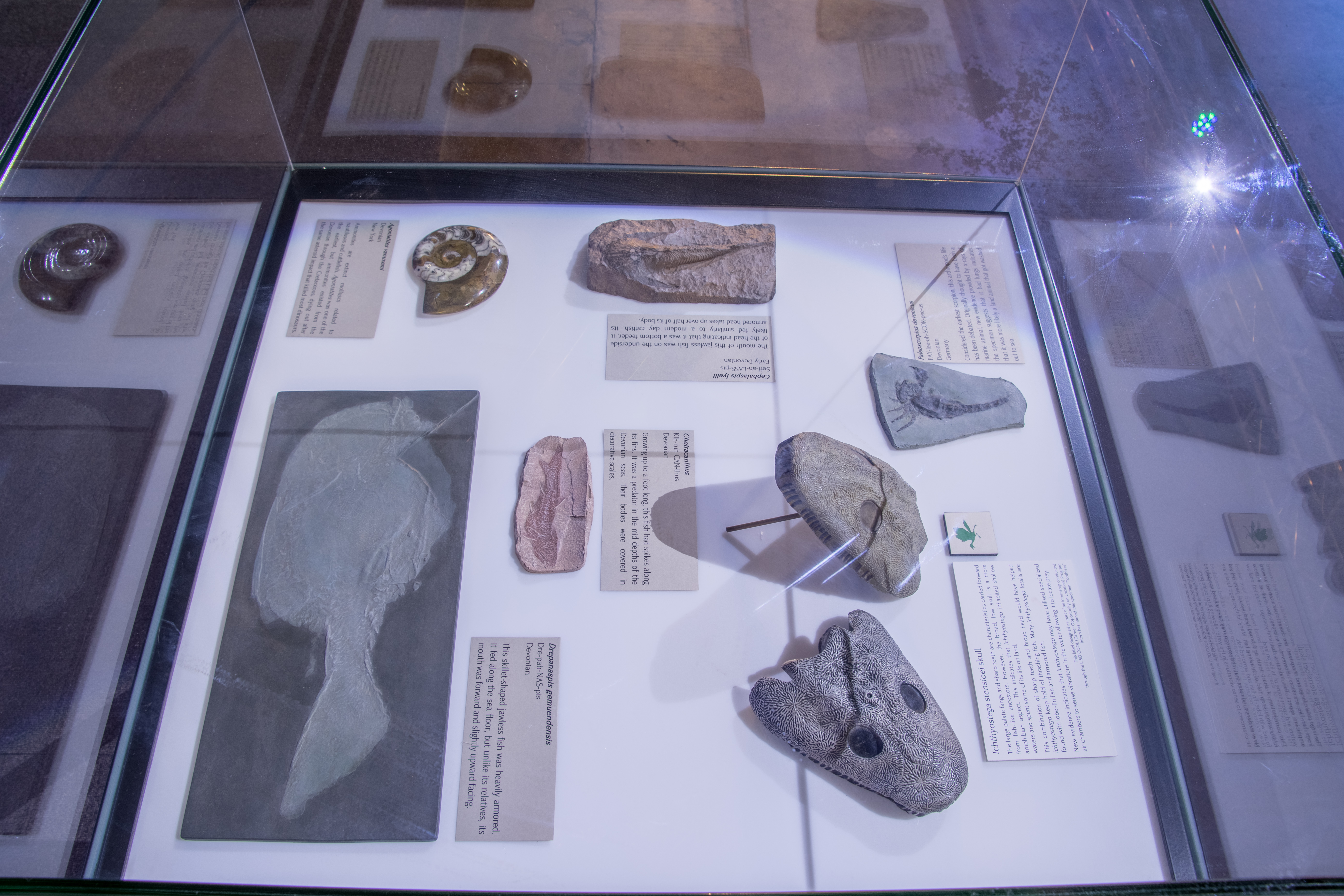 Various sea creature fossils.