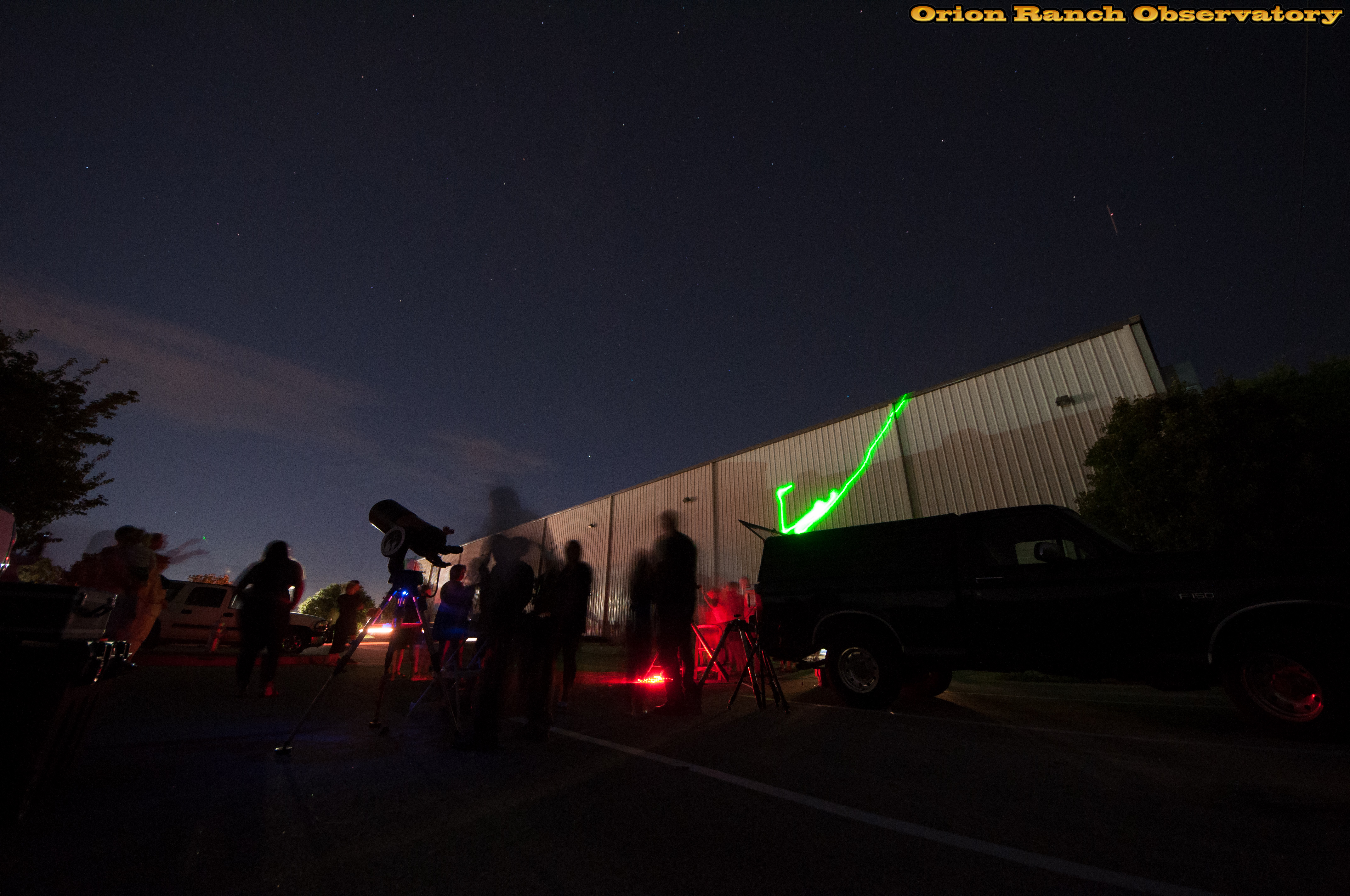 Eddie trying to illustrate the location of the Big Dipper behind the building using his laser pointer. The "pointer stars" at the cup end of the Big Dipper point towards the North Star, Polaris.