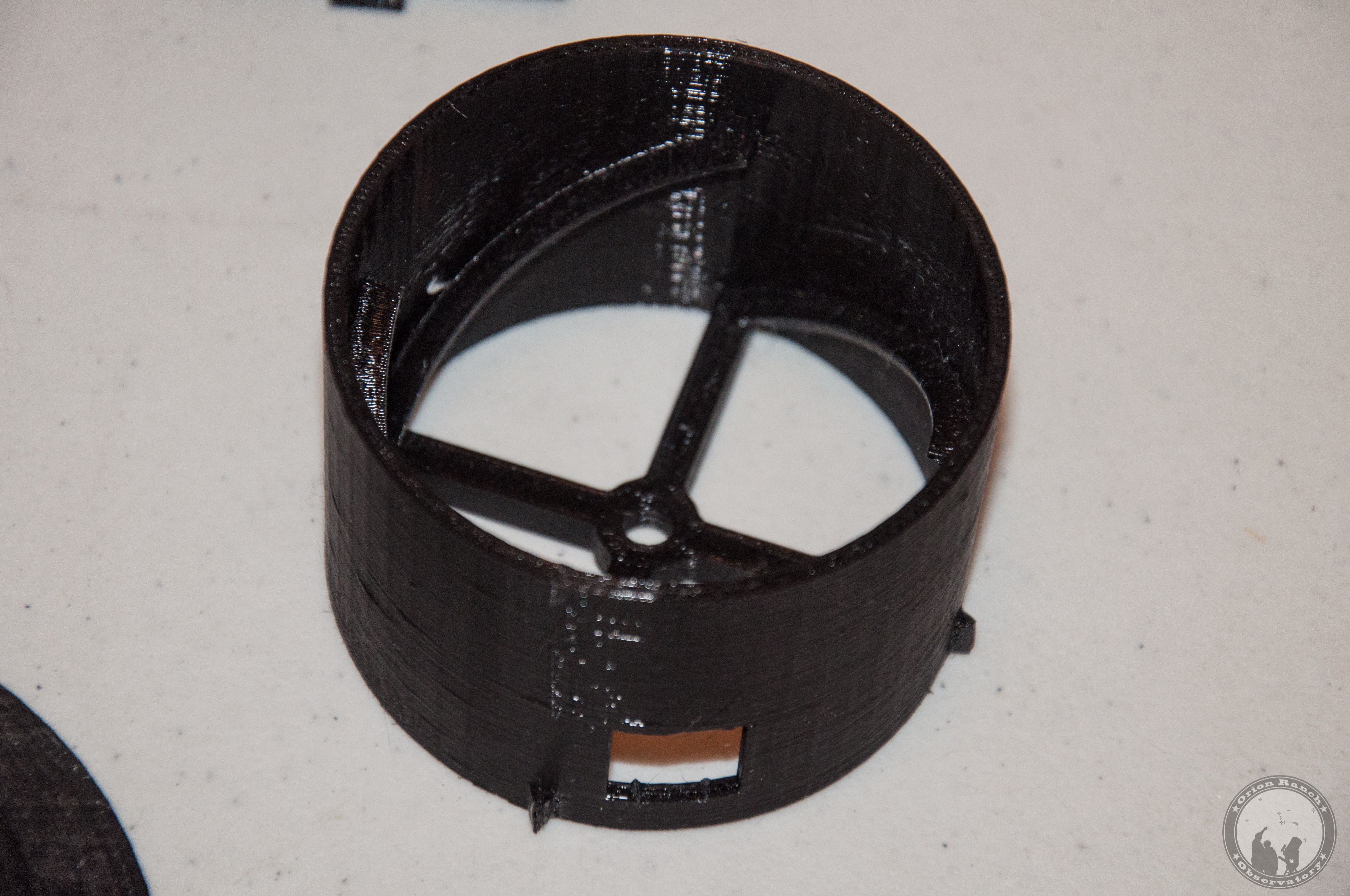The camera mounts into a ducted part that goes on top of the duct column. Spiral vanes circulate the air about the camera and should also help push some of the air through the heatsink slots at the base of the camera.