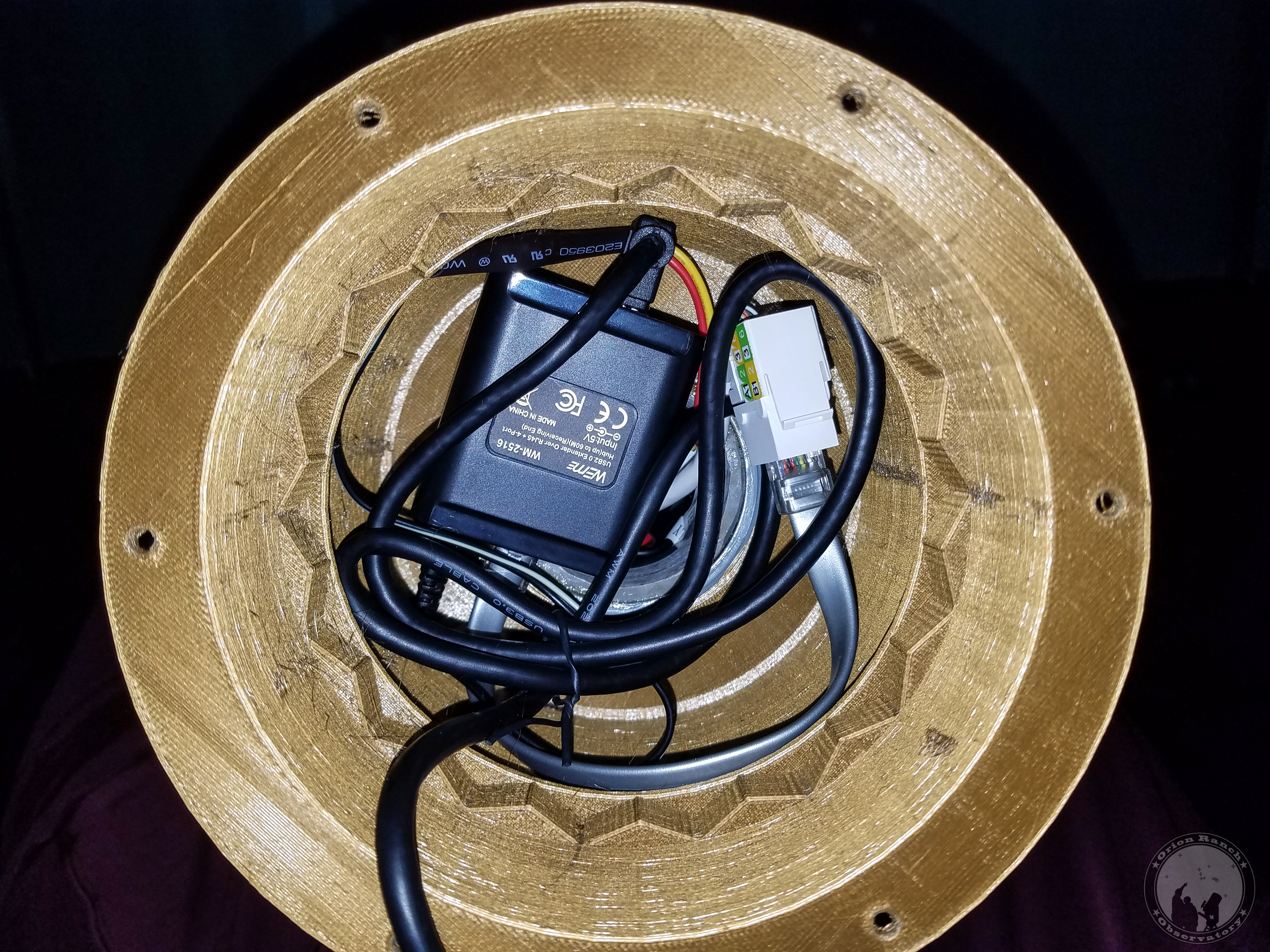 USB extender and power supply components in housing.