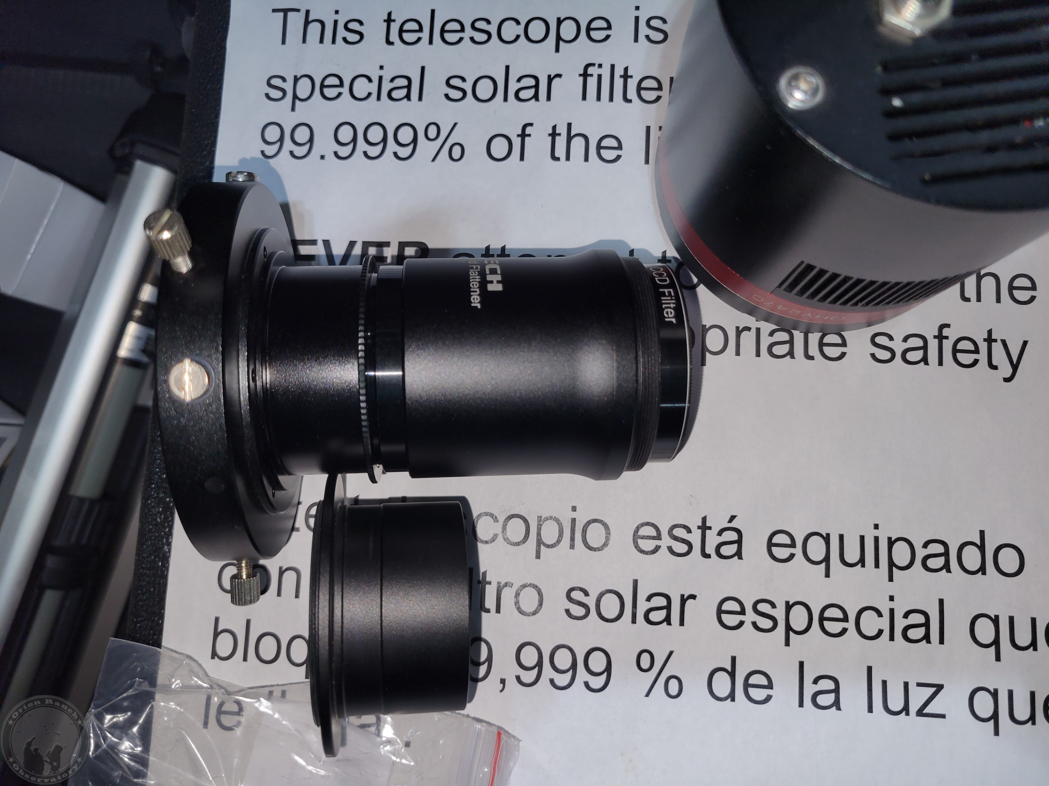 Getting the camera back focus spacing exactly right for this flattener, using the ZWO nosepiece and the Blue Fireball variable spacer. The QHY adapter is beside it. Of course I discovered I had another adapter that probably would have worked, but oh well.