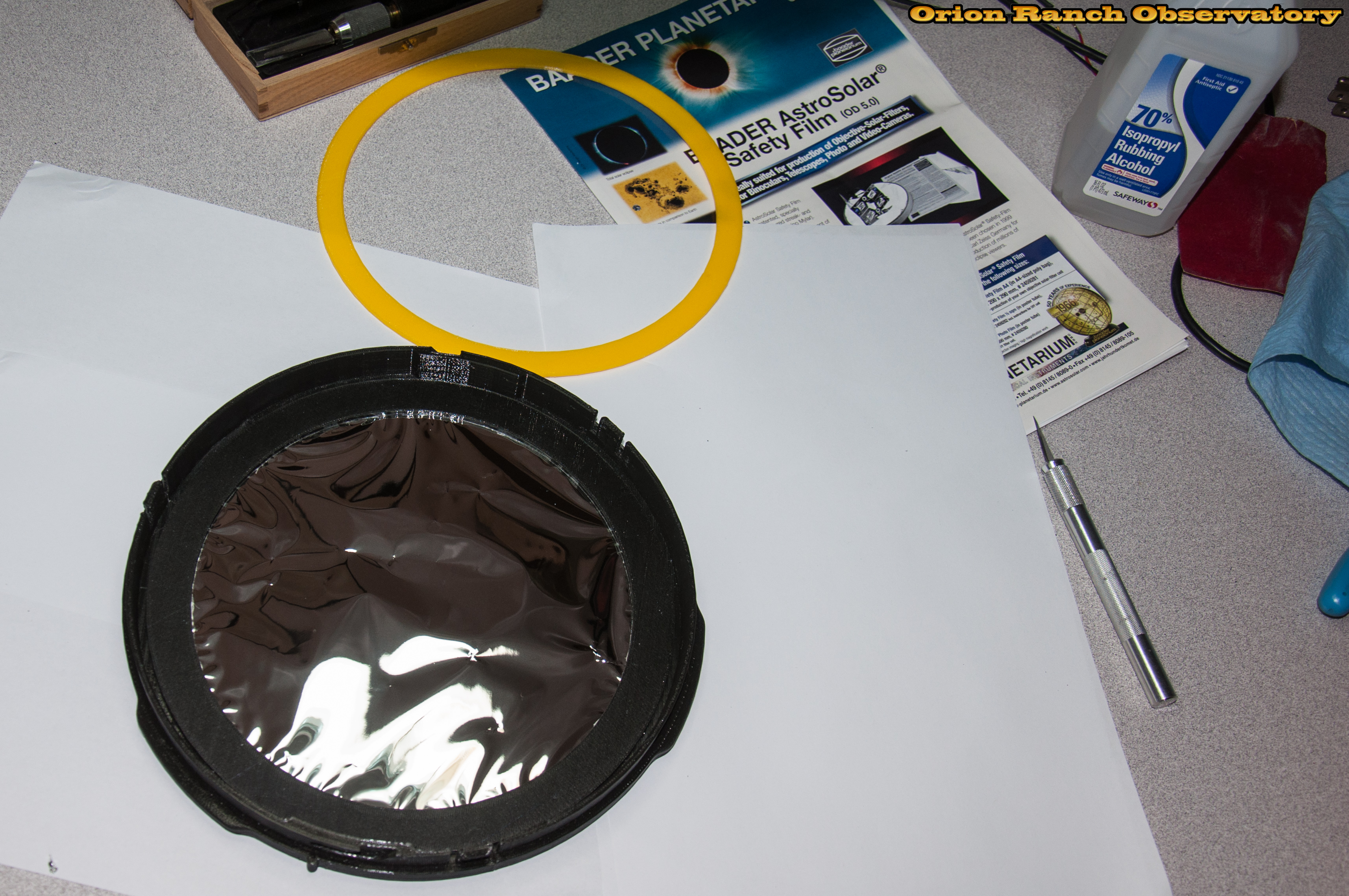 The assembled filter and some of the associated pieces and tools.