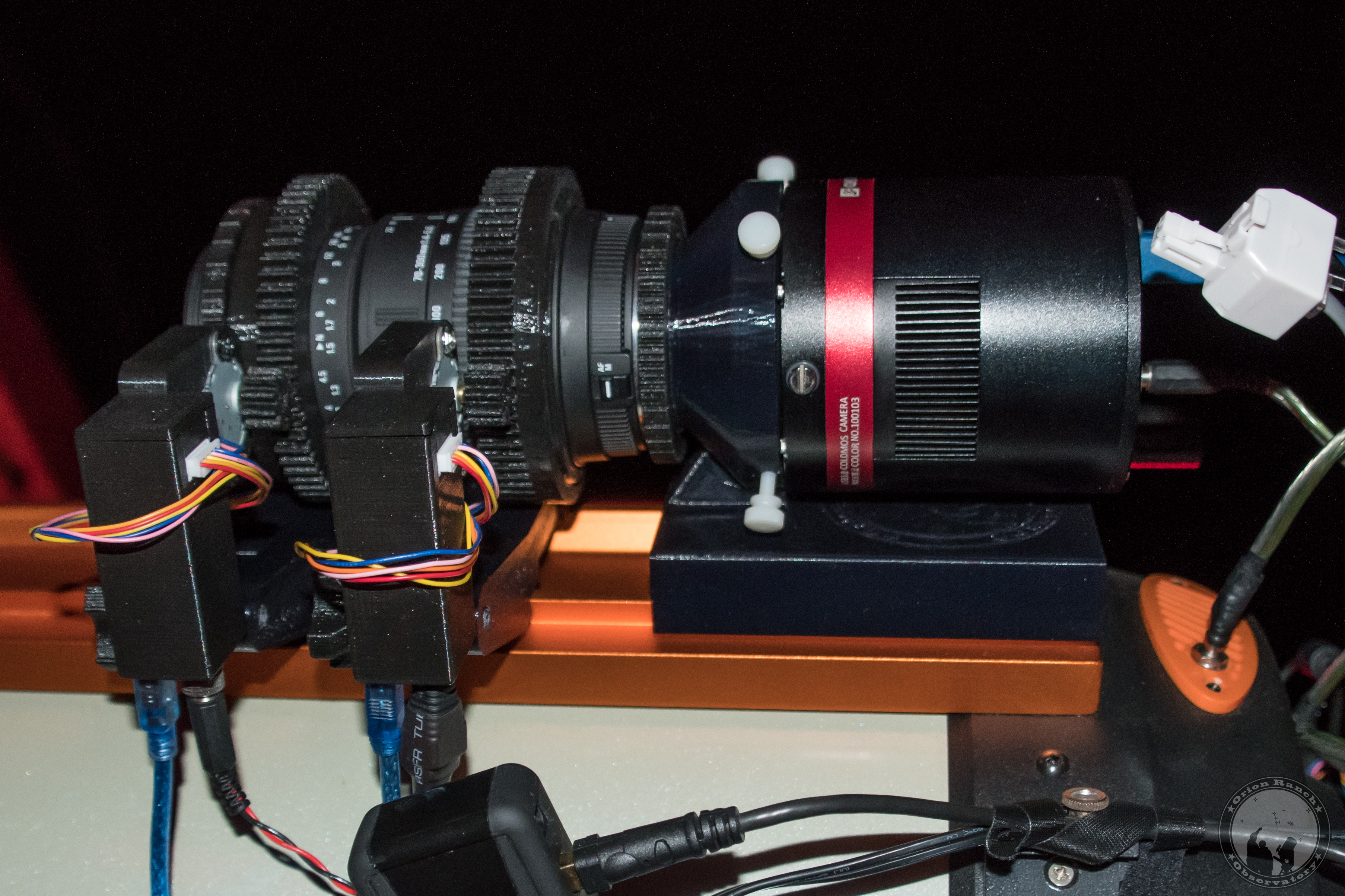 Various views of the new Arduino zoom and focus motors for my 70-300 Sigma Nikon lens.