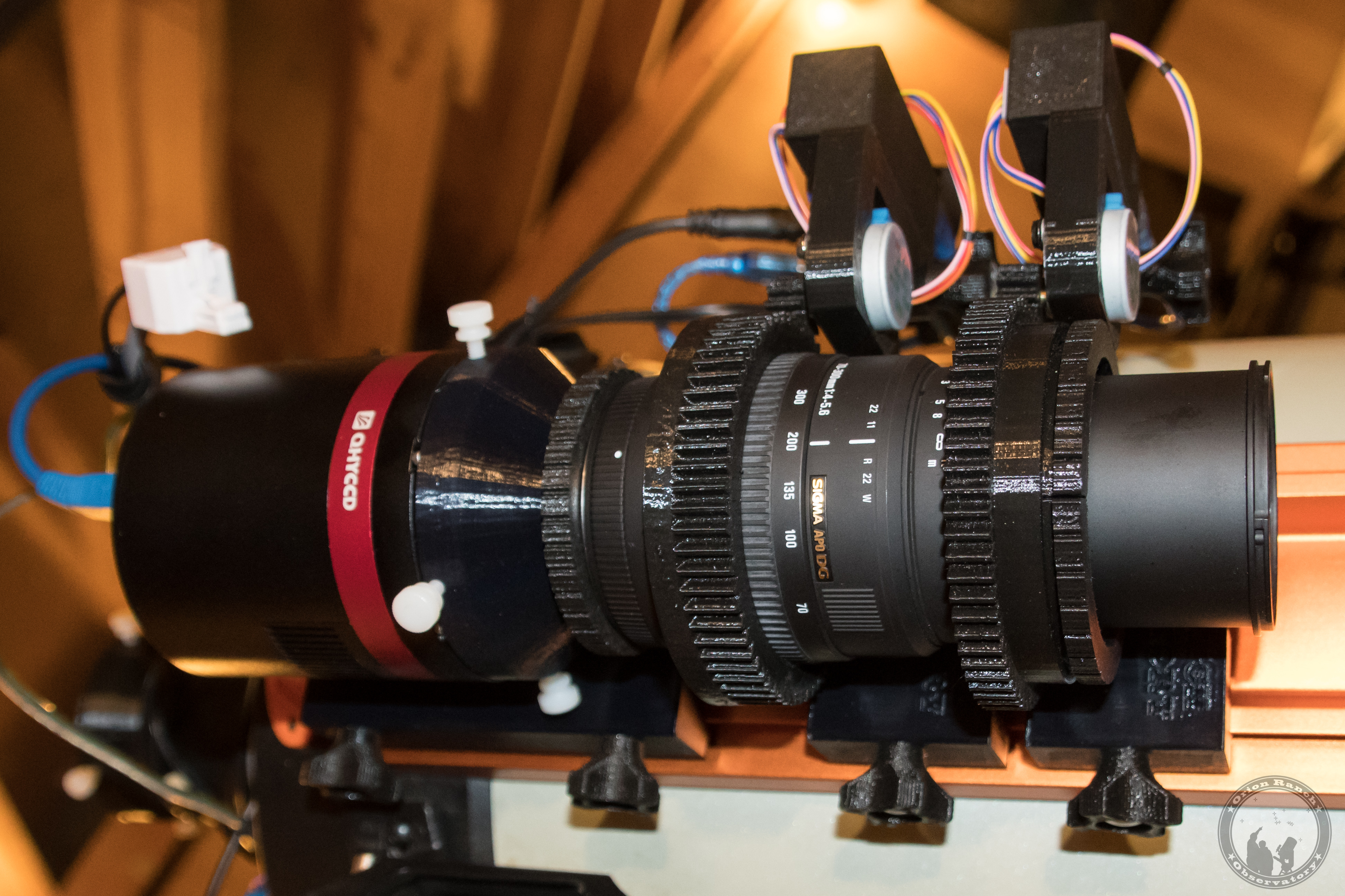 Various views of the new Arduino zoom and focus motors for my 70-300 Sigma Nikon lens.