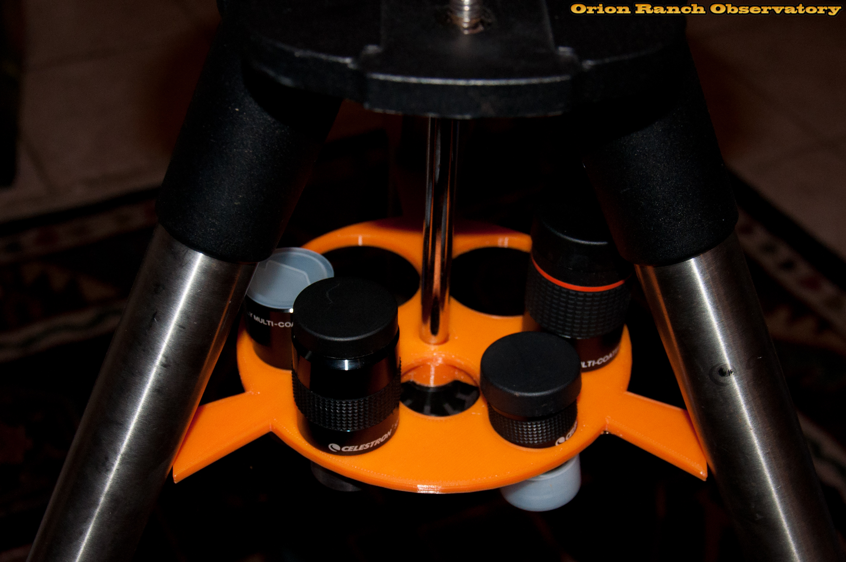My initial version of a Celestron 8SE tripod leg spreader with eyepieces in place.