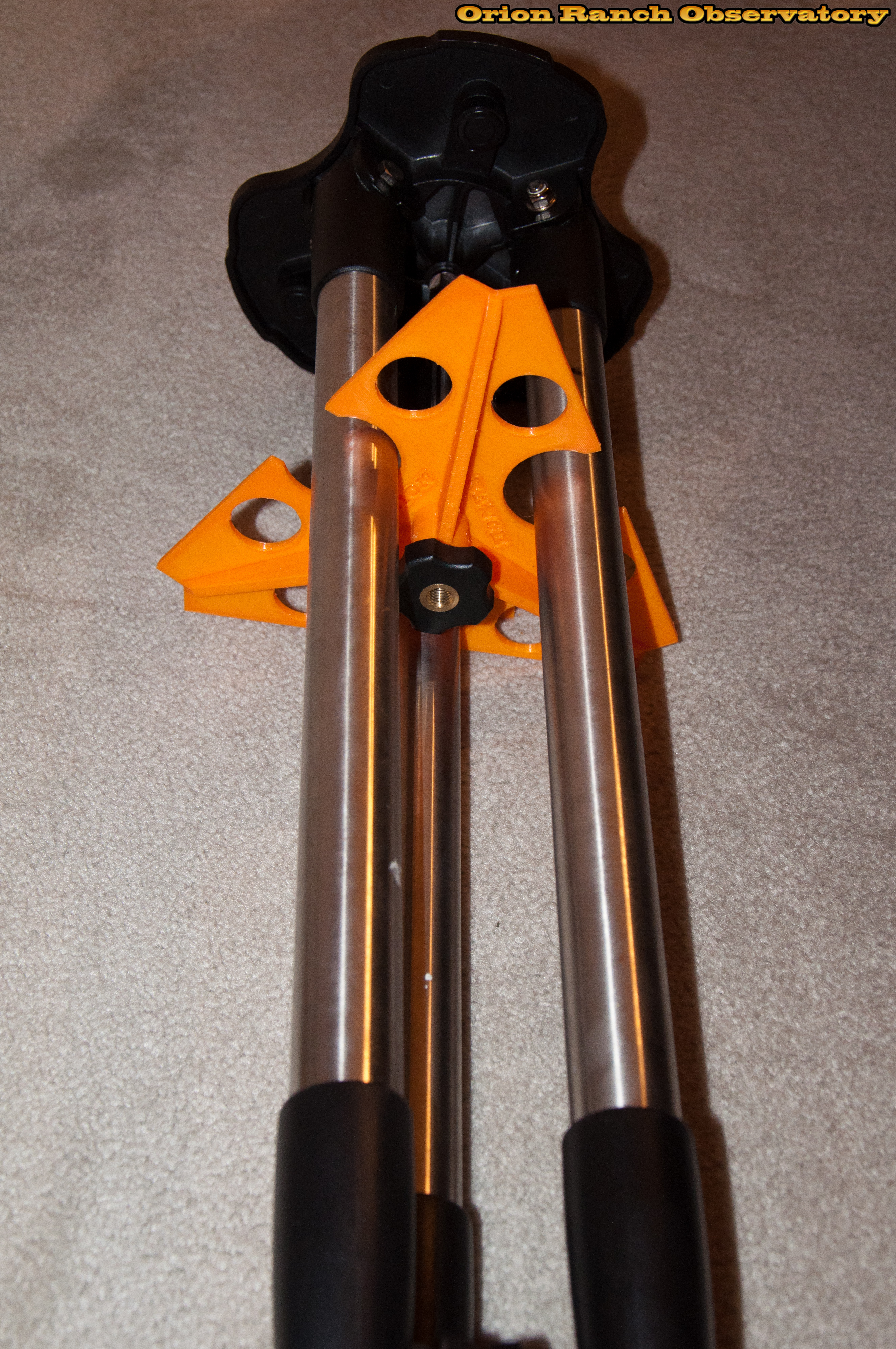 The 2" holes are slotted so that the spreader can be rotated and left on the tripod in the fully closed orientation.