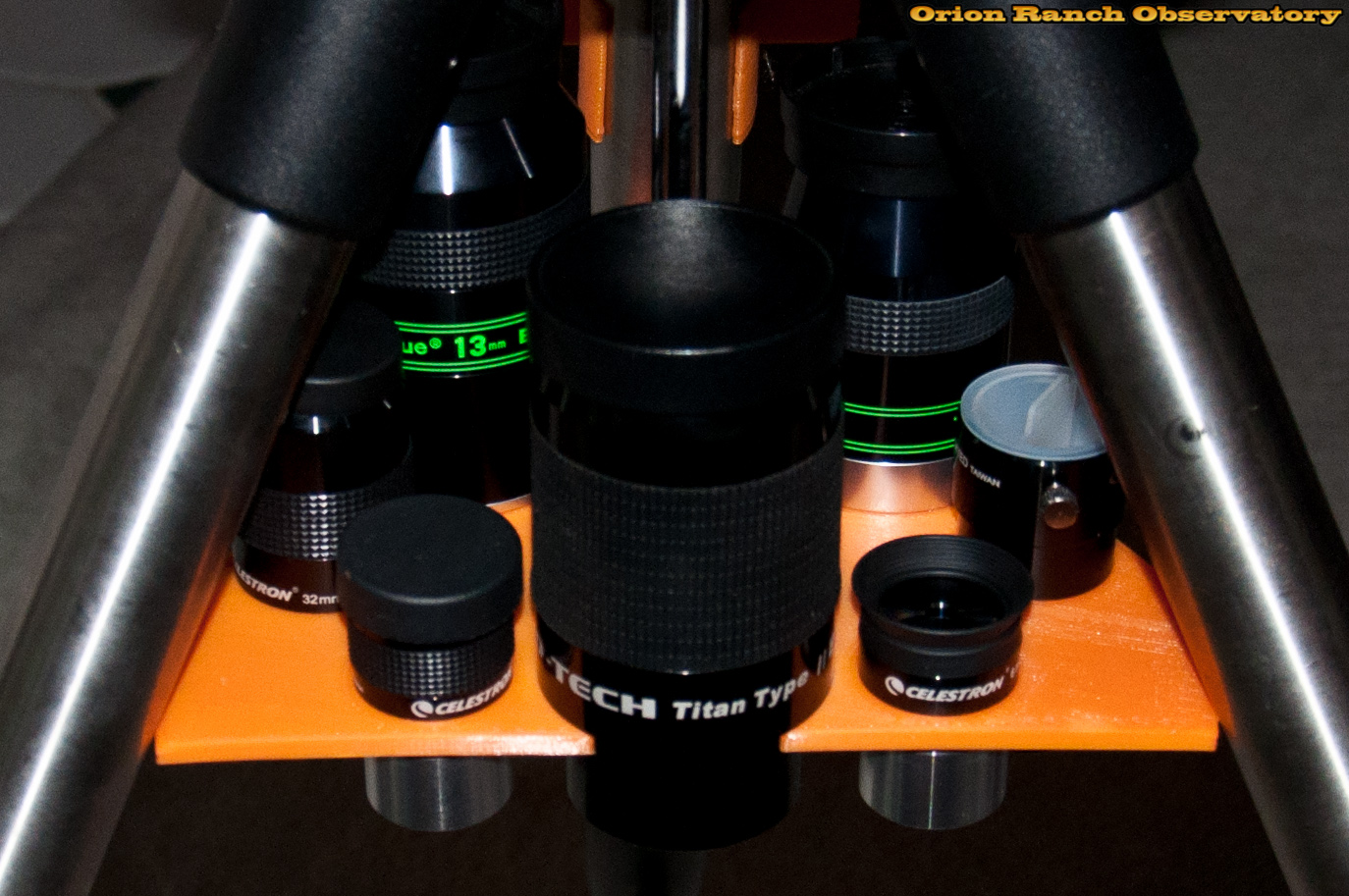Adding three 2" eyepieces to show it fully stocked. This does quite a bit better than the standard Celestron spreader.