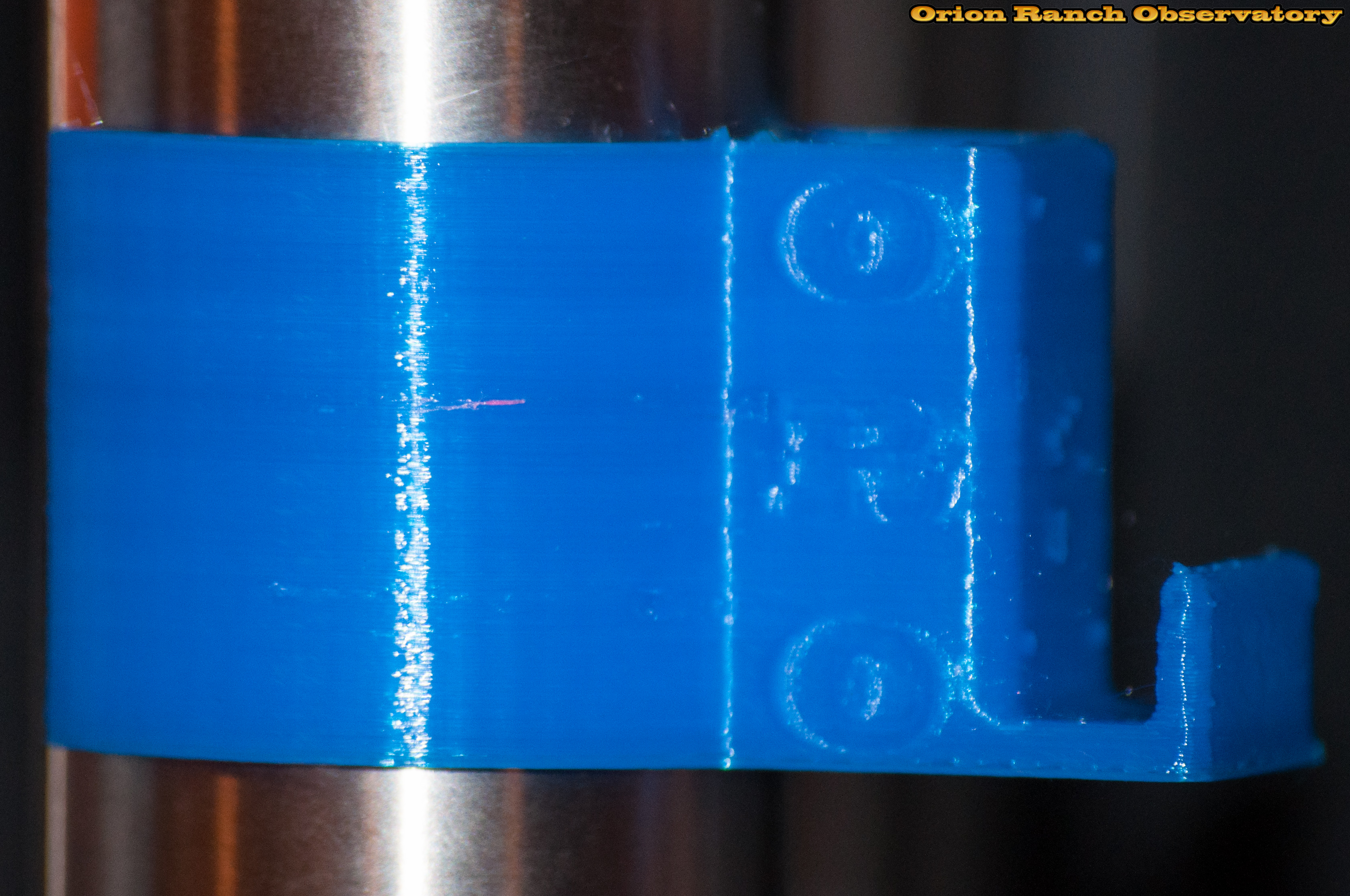 A new design for the hand control holder leg clips with a slot in them for power cord handling. Note the Orion Ranch Observatory ORO label and the Orion constellation.