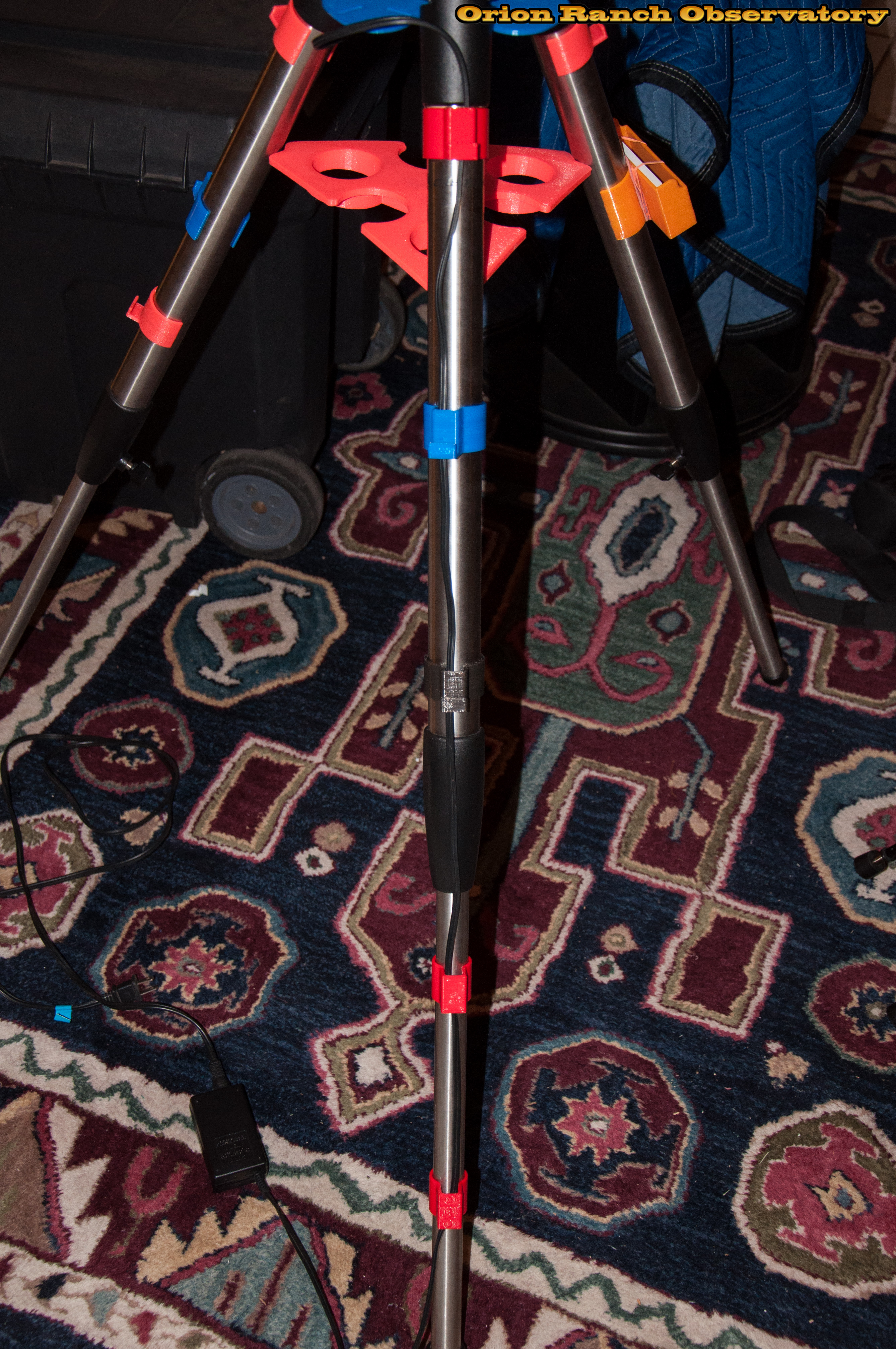 Illustration of the leg clips with the power cord running through them. The cord is controlled, but the mount can easily pull more up through the slots if needed without binding.