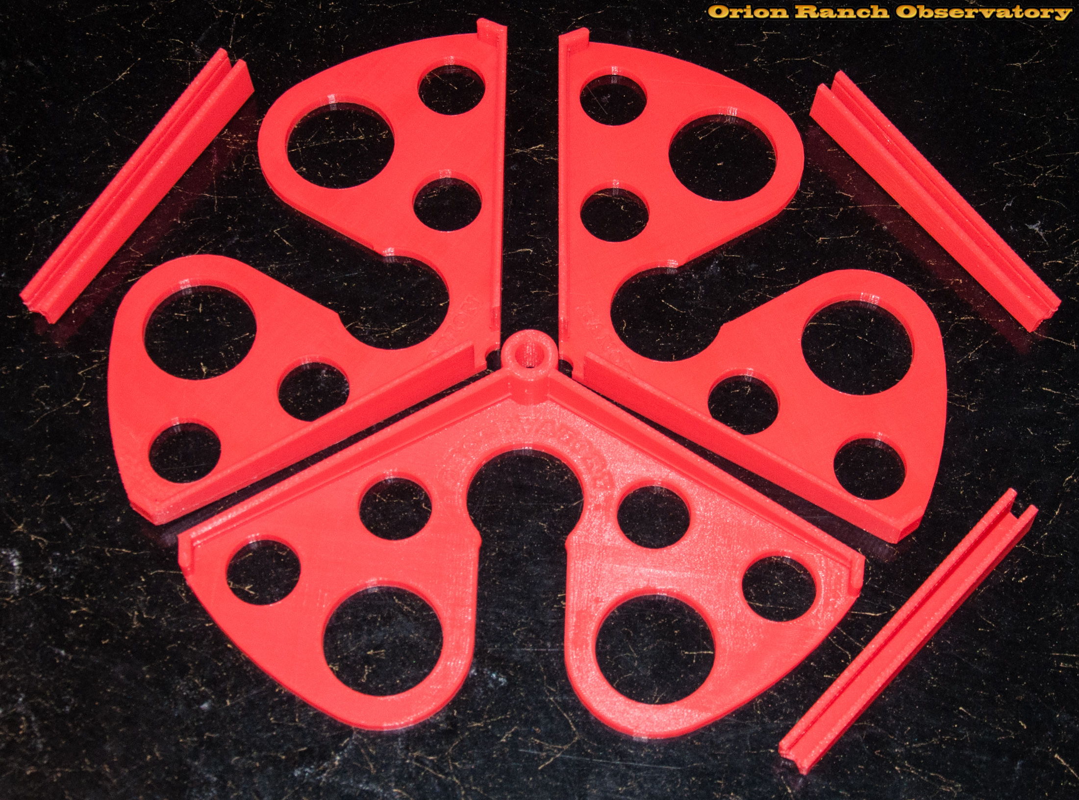 Pushing the limits of the build volume again, I built a much larger spreader. Here are the component parts consisting of three wedges and three clips.
