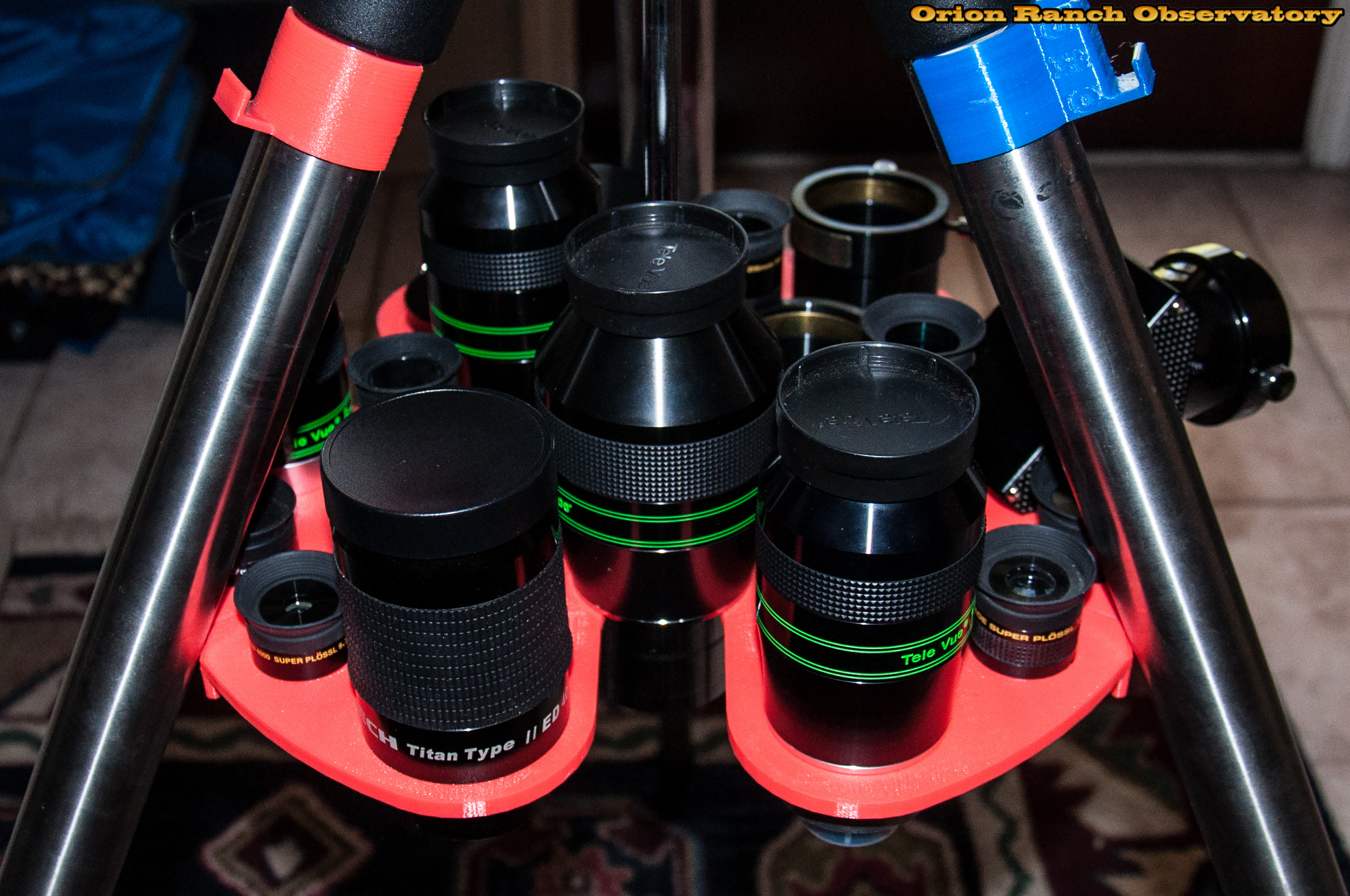 Taking every 2" eyepiece and component I had handy at the house as well as a case full of Meade 1.25" eyepieces, the spreader is fully loaded. Even the biggest pieces clear fine.