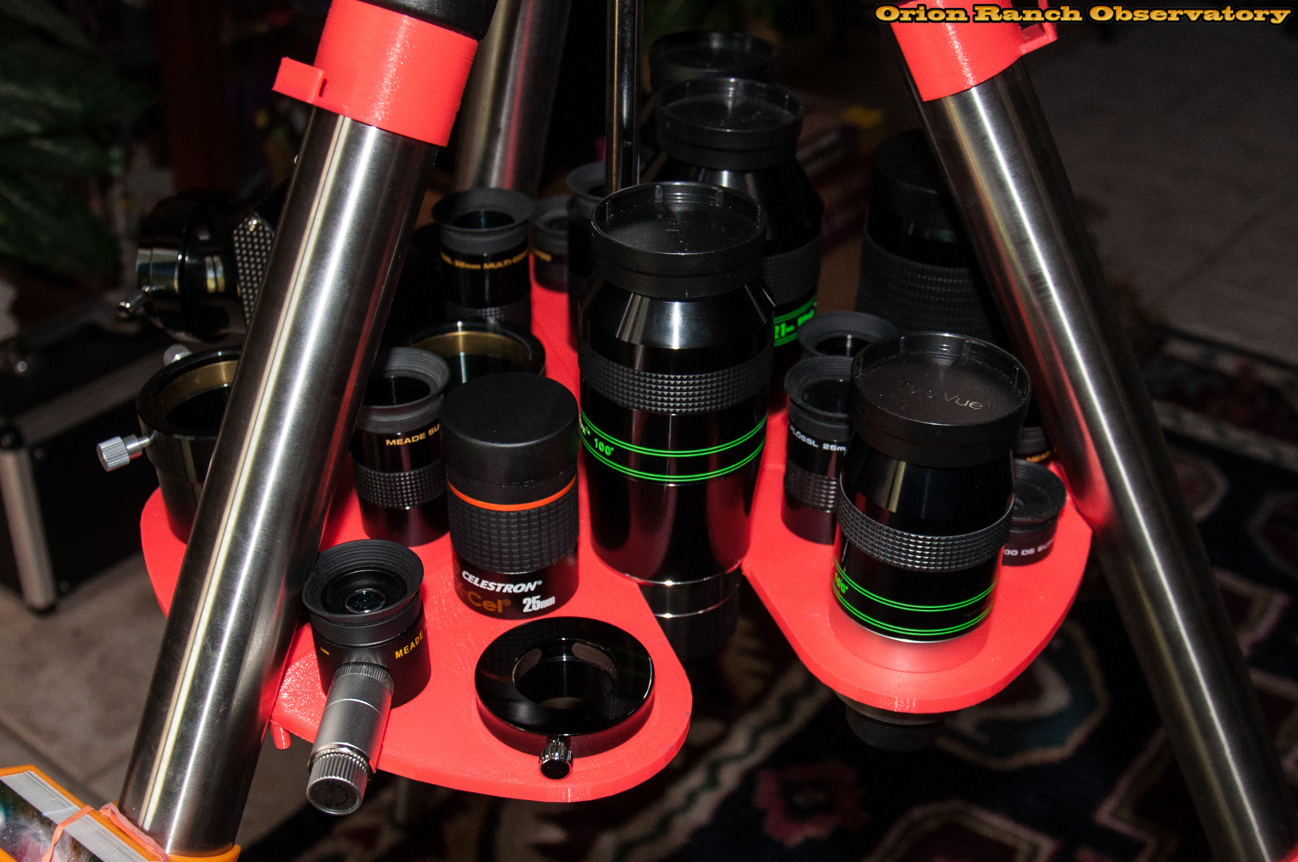 Taking every 2" eyepiece and component I had handy at the house as well as a case full of Meade 1.25" eyepieces, the spreader is fully loaded. Even the biggest pieces clear fine.