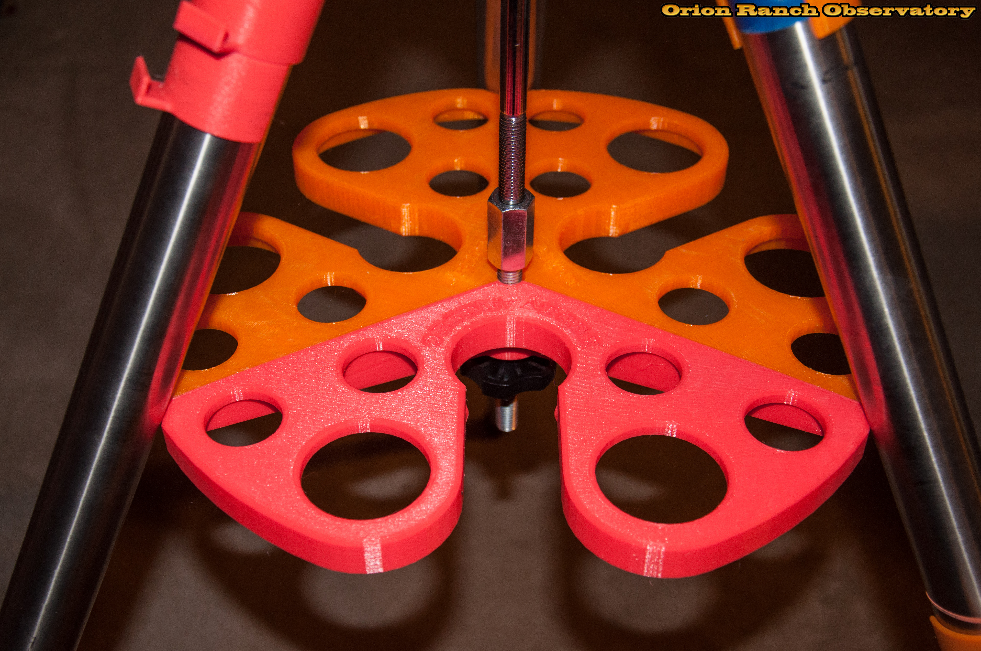 Various shots of the new spreader installed on the tripod. Looks great! I've ordered some flourescent orange to reprint this in something that should glow under my UV LEDs.