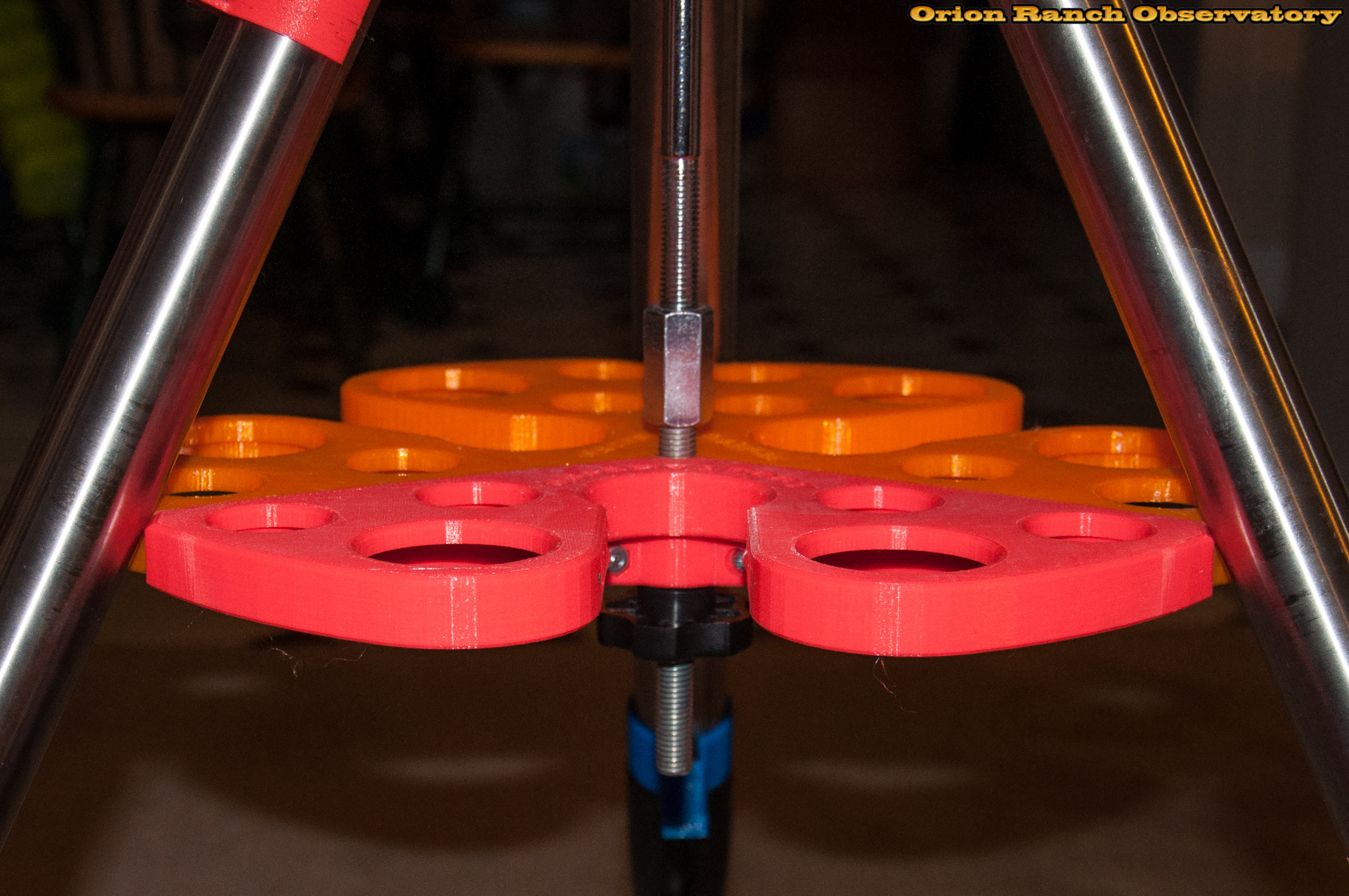 Various shots of the new spreader installed on the tripod. Looks great! I've ordered some flourescent orange to reprint this in something that should glow under my UV LEDs.