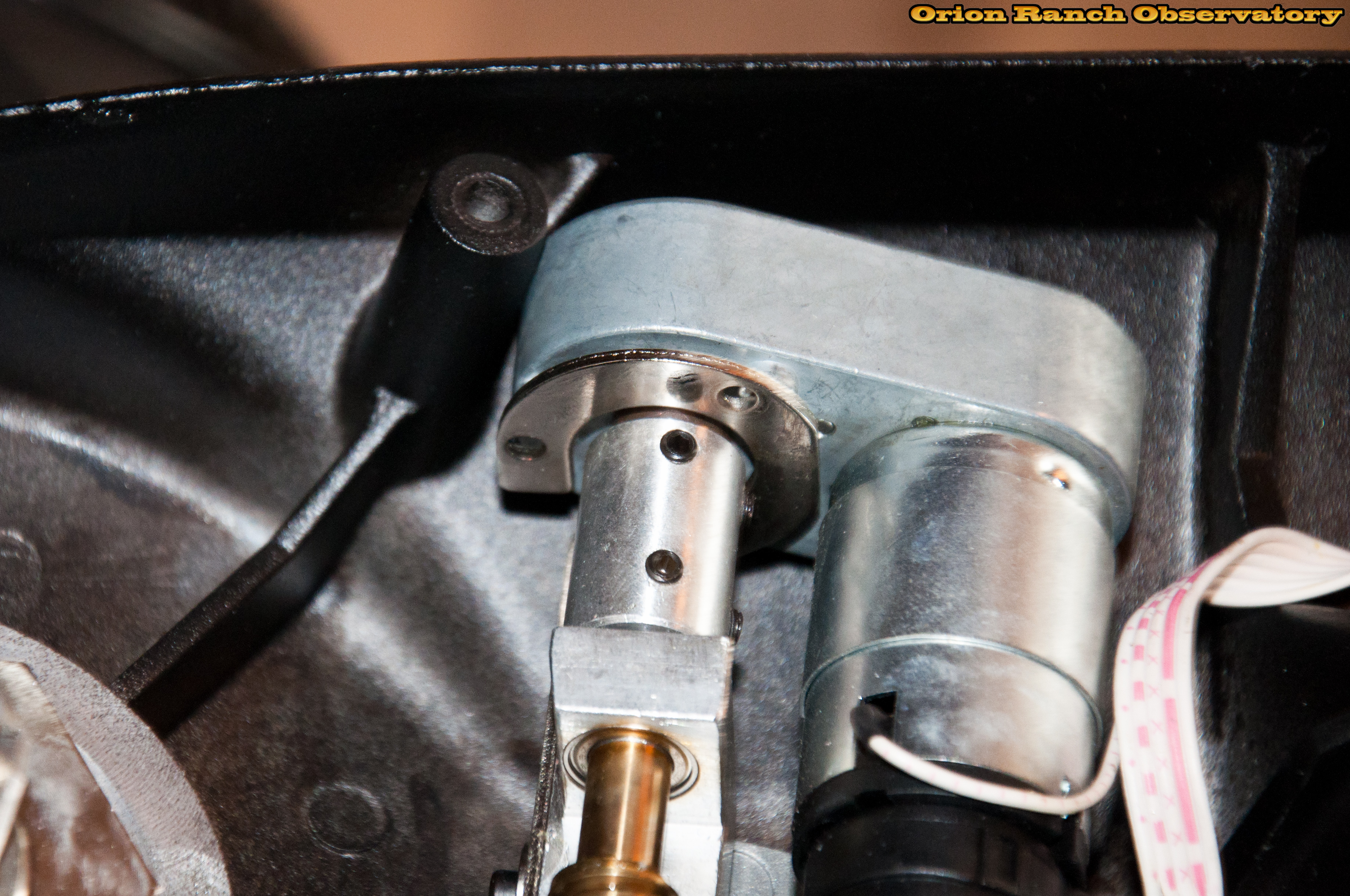 Two screws hold the gearbox to its mounting bracket. Removing them allows it to rotate around the worm gear axis.