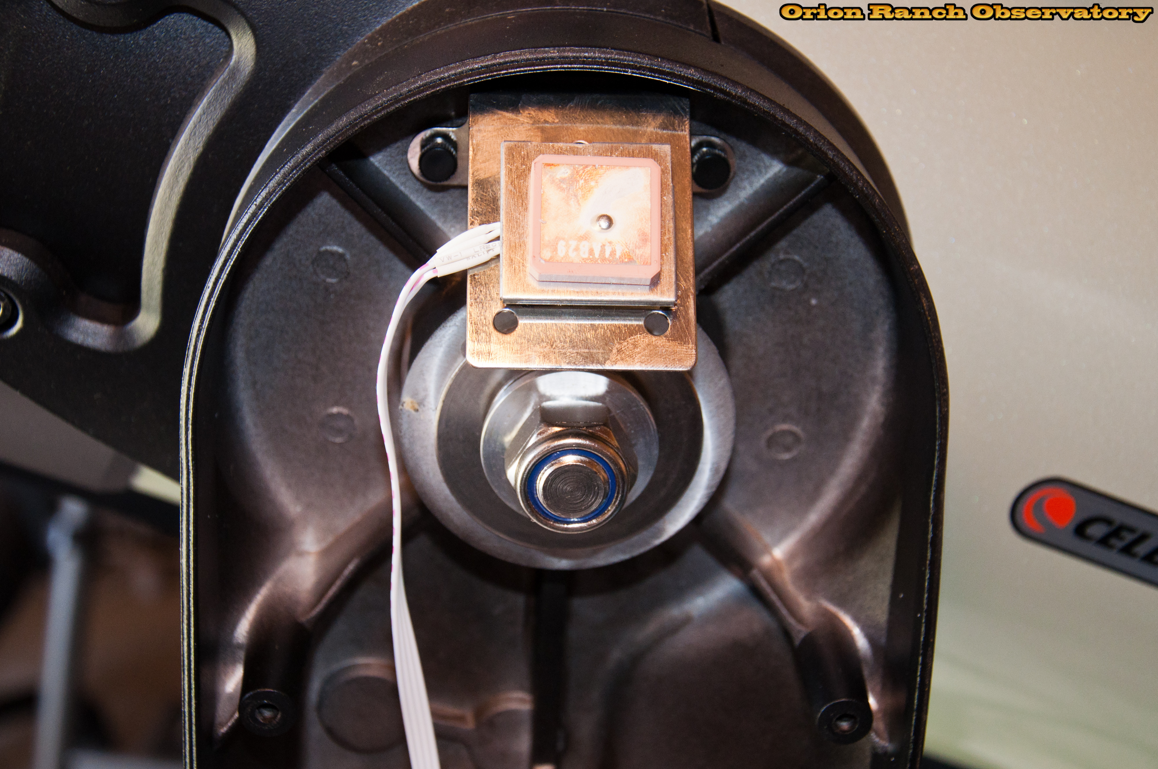 Interior of the handle side pylon showing the simple lock nut and the GPS antenna.