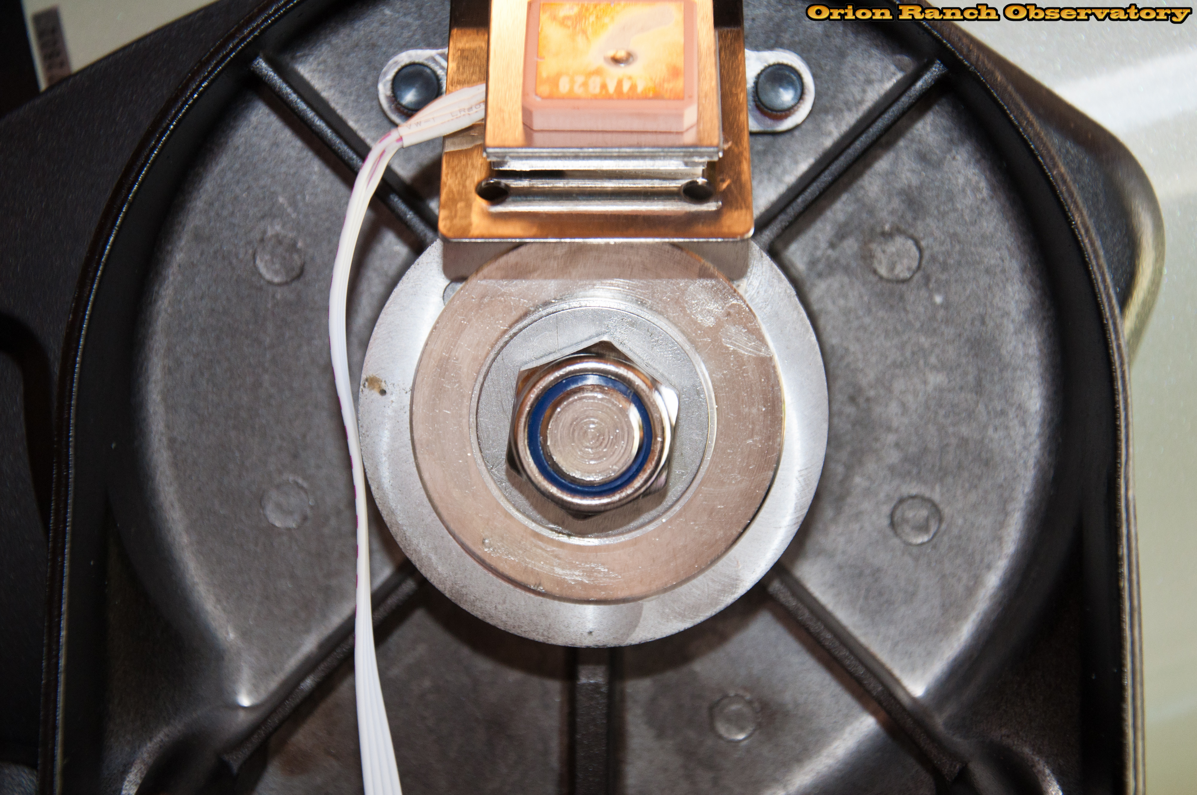 Centering the larger washer and re-installing the roller bearing and lock nut.