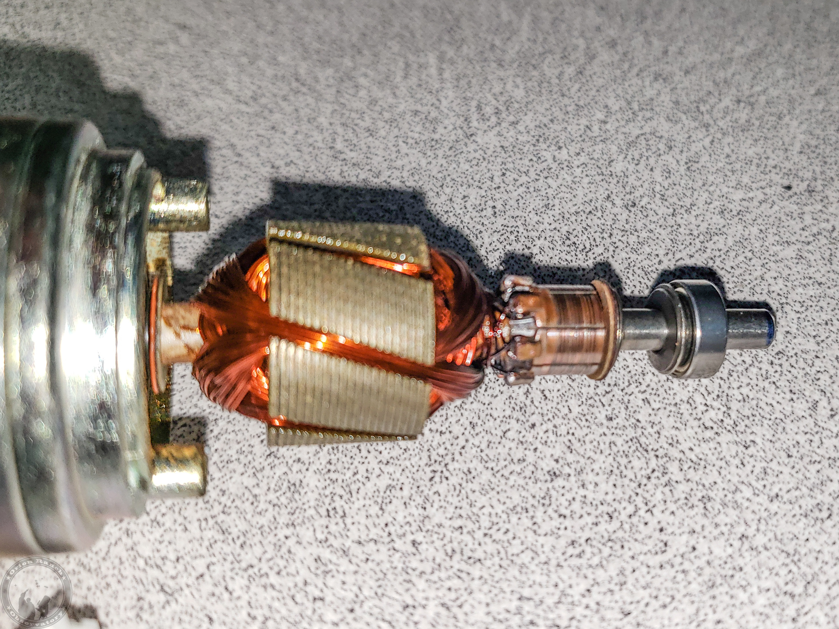 The commutator contacts show some wear, but are still ok. The bearing pulled out of the end cap when it caught on the set screw bur.