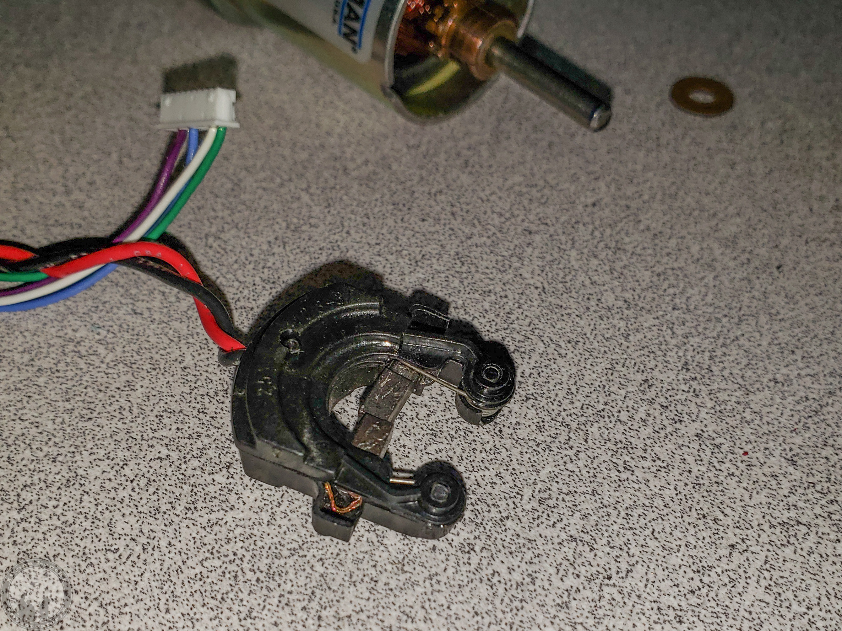 After cleaning up the inside of the slot, the brush slides well under the spring tension. Note the slots near the spring coils where Pittman obviously has a custom tool to retract the brushes for assembly.