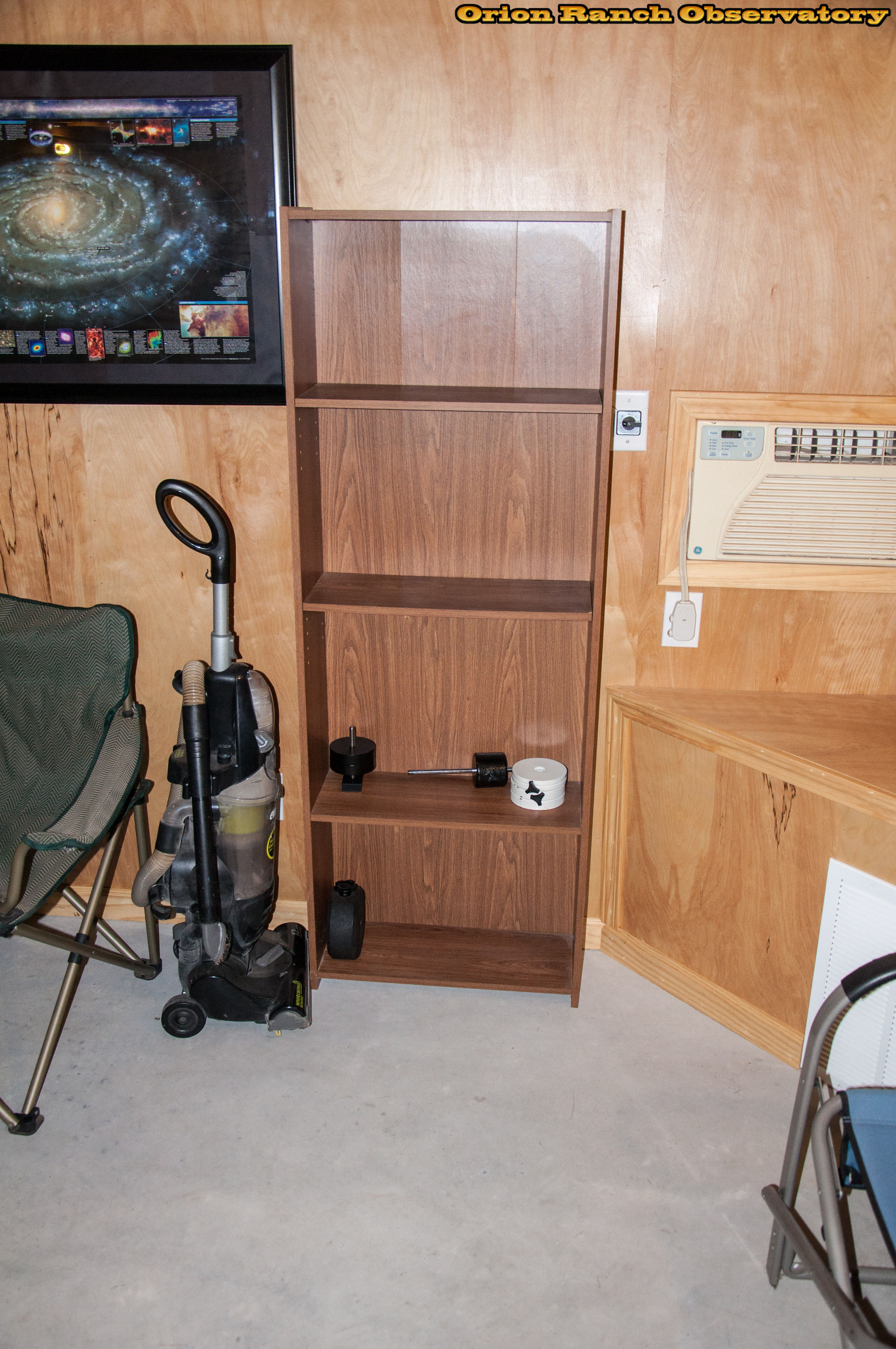 I may still buy another plastic cabinet, but since I can't bring myself to be wasteful, the other two shelves are still in place. Mostly just empty cardboard boxes on the one, and some counterweights on the other.