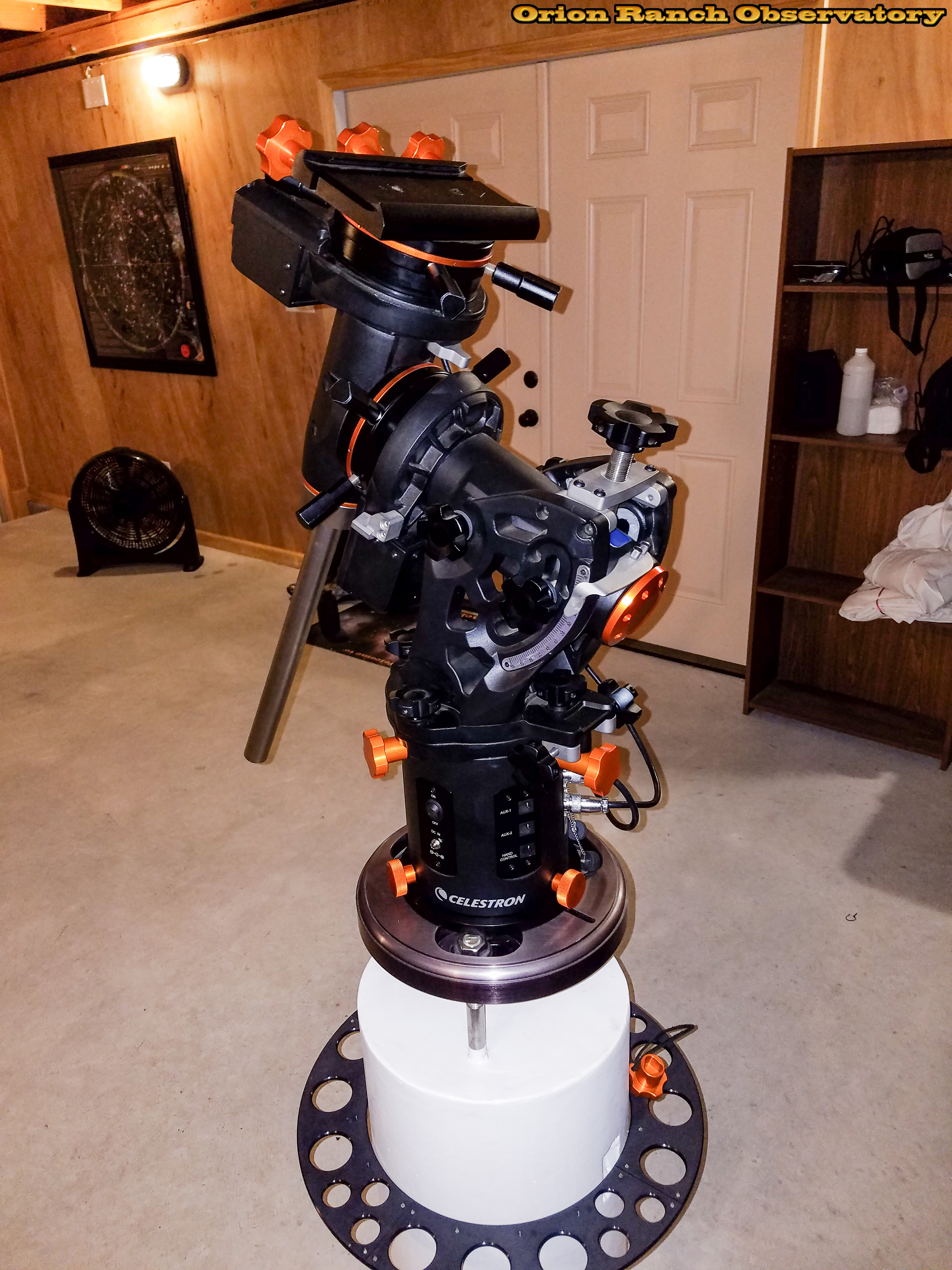 Various views of the CGE Pro mount head installed on the electronics pier.