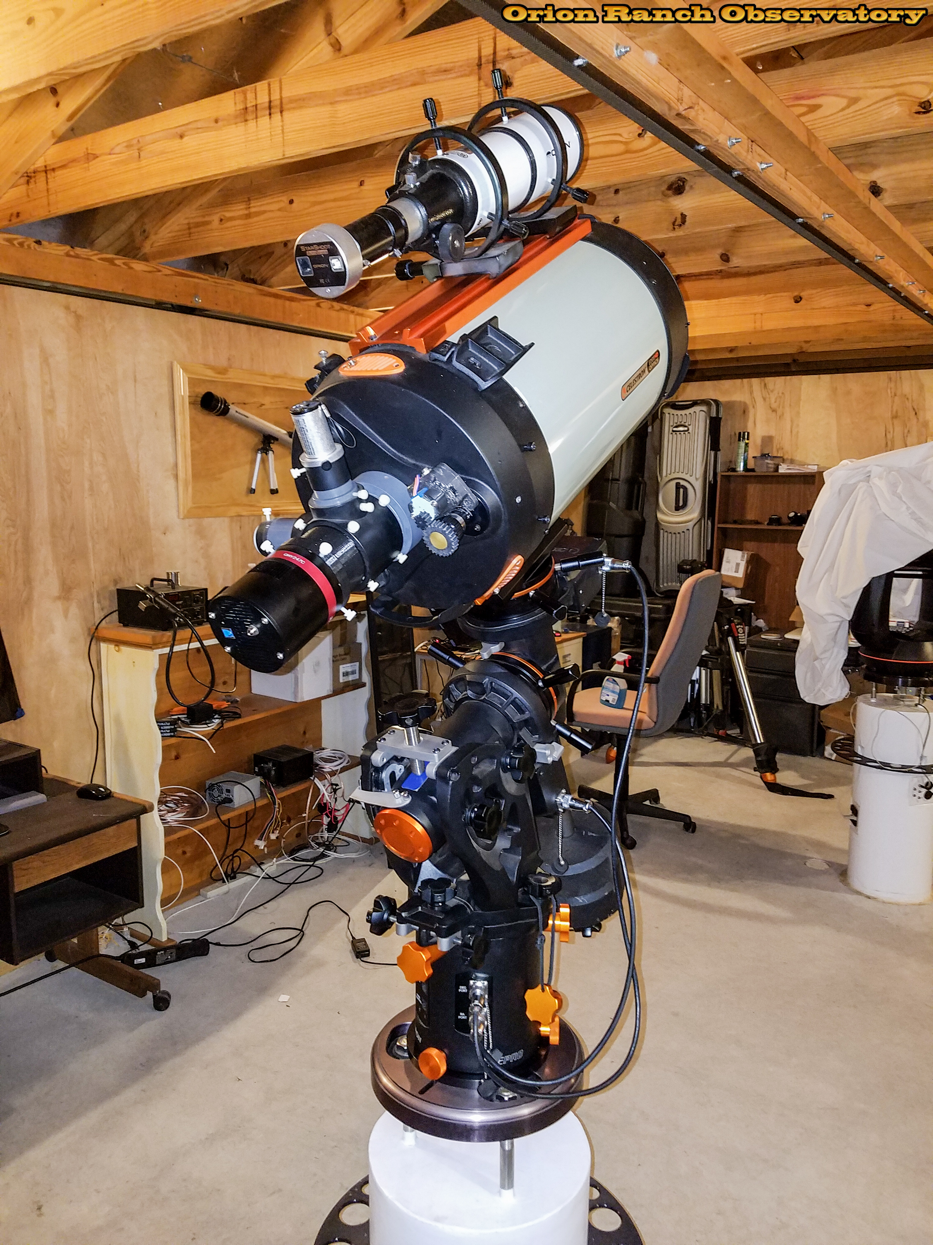 Looking good! Various views of the 11" OTA and camera installed on the mount. The guide scope is really more for testing weight capacity and possibly for use in remote alignment if I lose alignment.