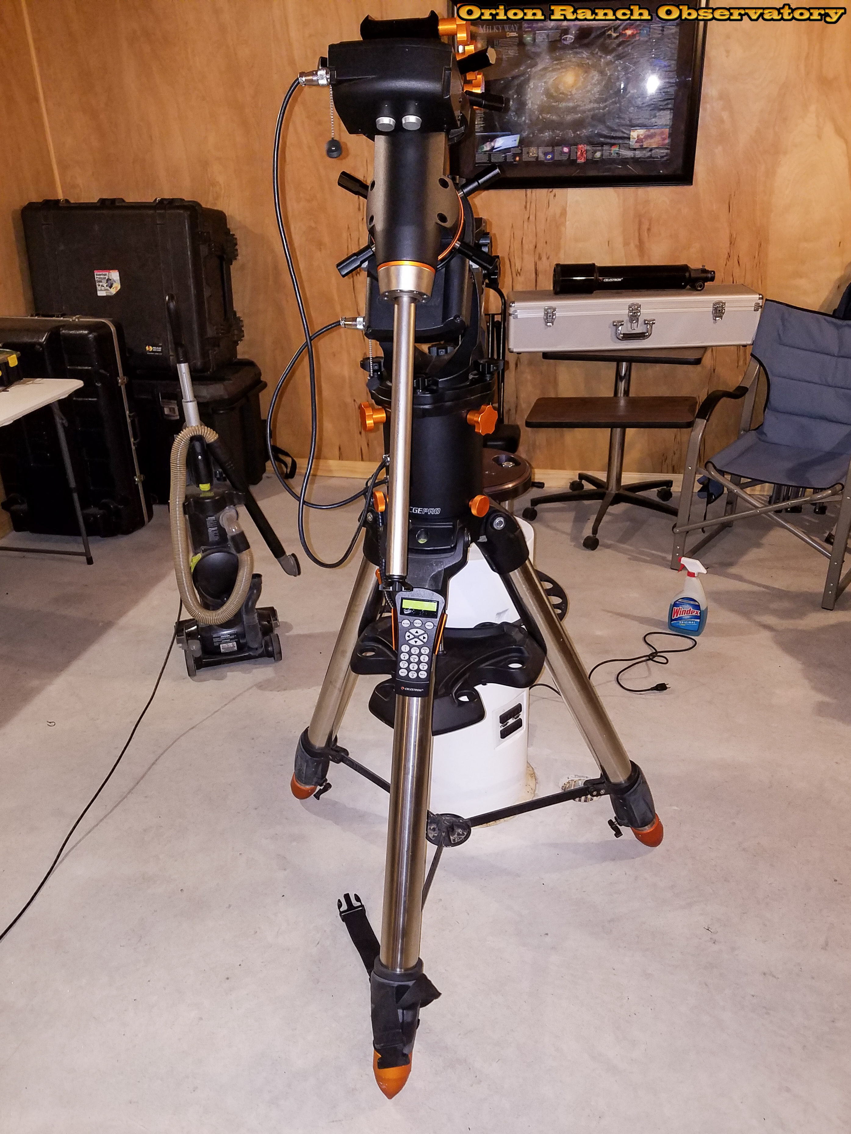 Don't have the pier plate yet, so here's the CGE Pro on the tripod by the south pier. You can compare the heights. The tripod at minimum is still taller than the pier, but it's going to be tall!