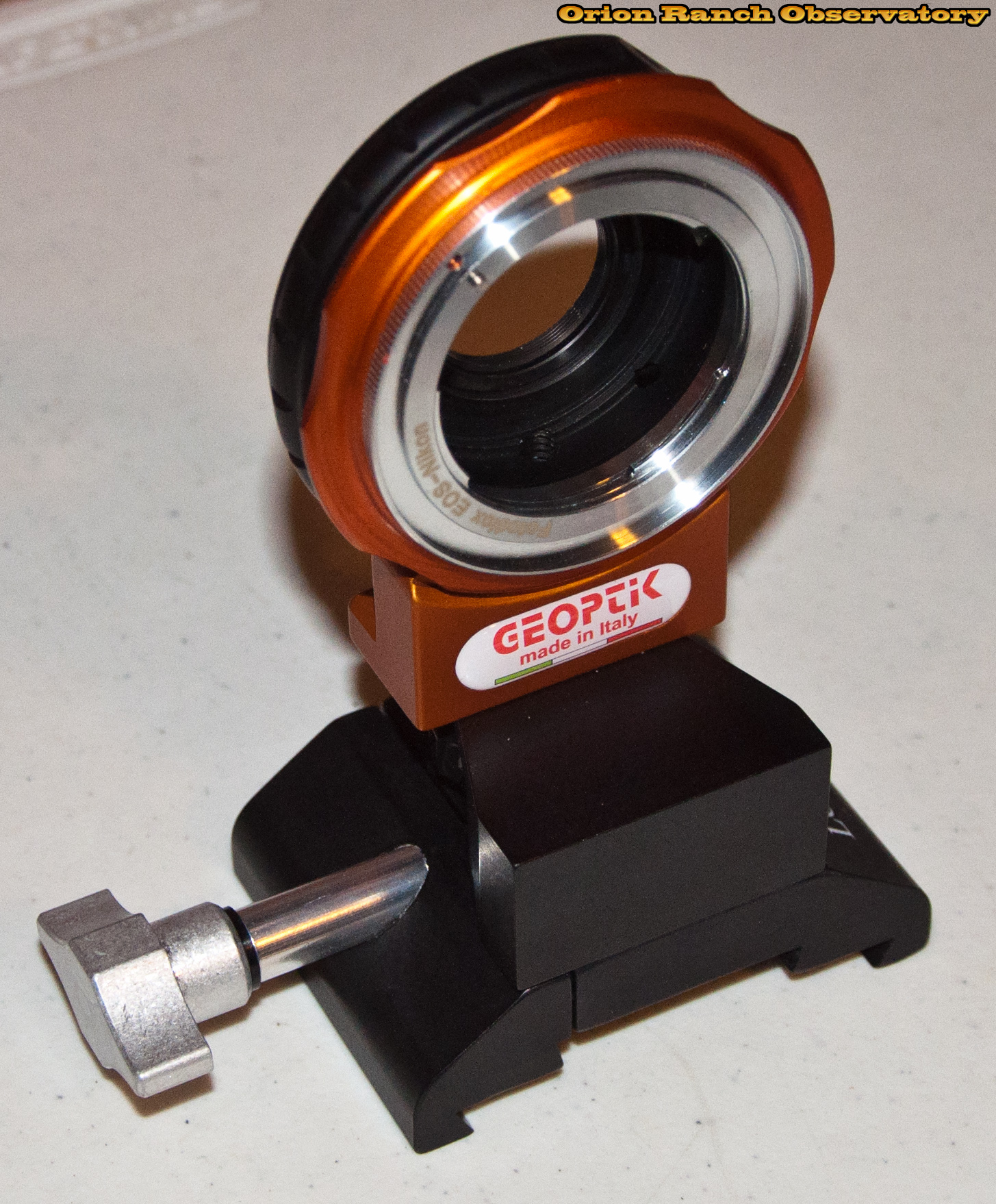 Geoptik Canon lens adapter with Nikon to Canon adaptor on a Losmandy dual V/L mount rail clamp.