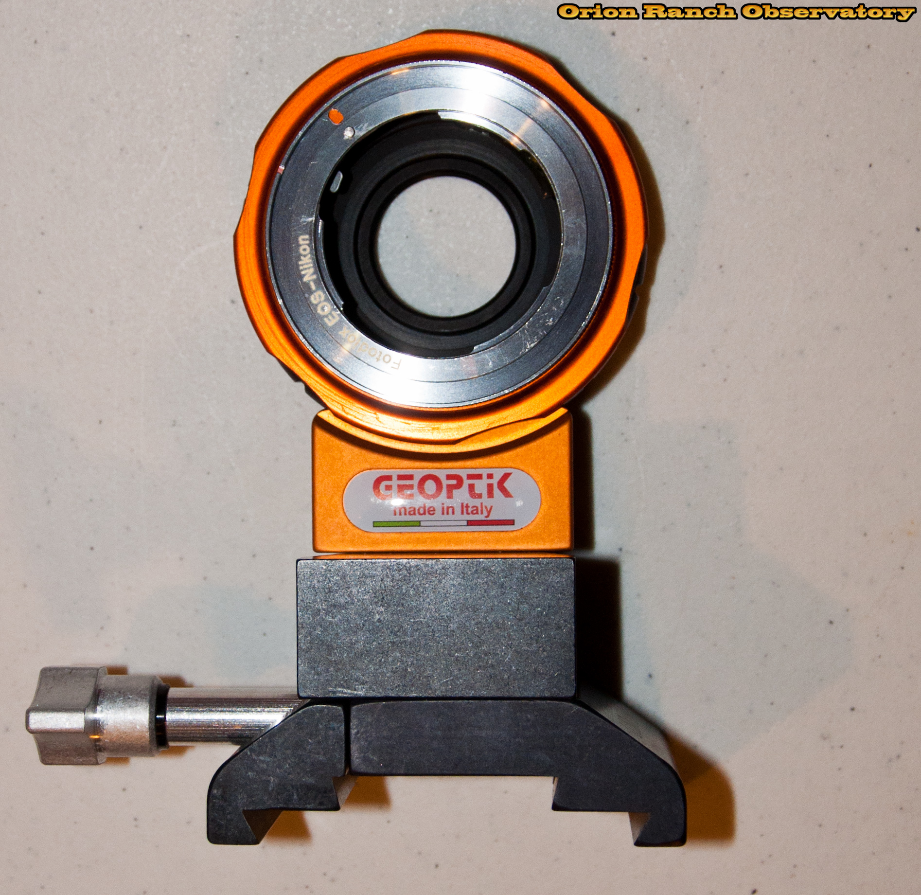 Geoptik Canon lens adapter with Nikon to Canon adaptor on a Losmandy dual V/L mount rail clamp.