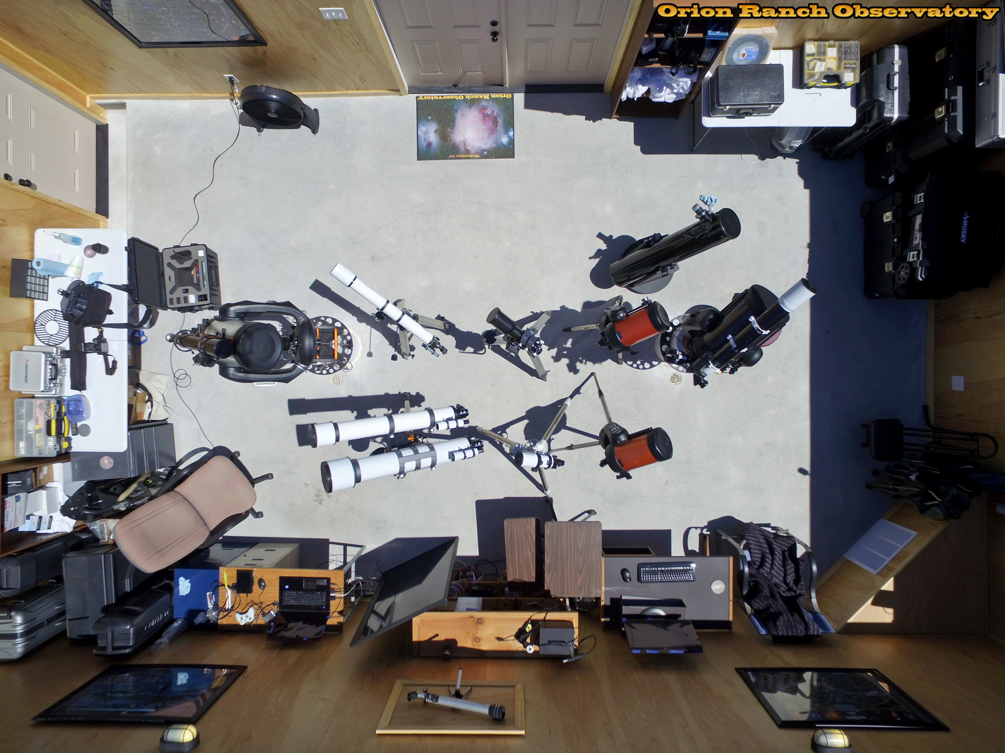 Aerial views of the menagerie of telescopes and observatory overall.