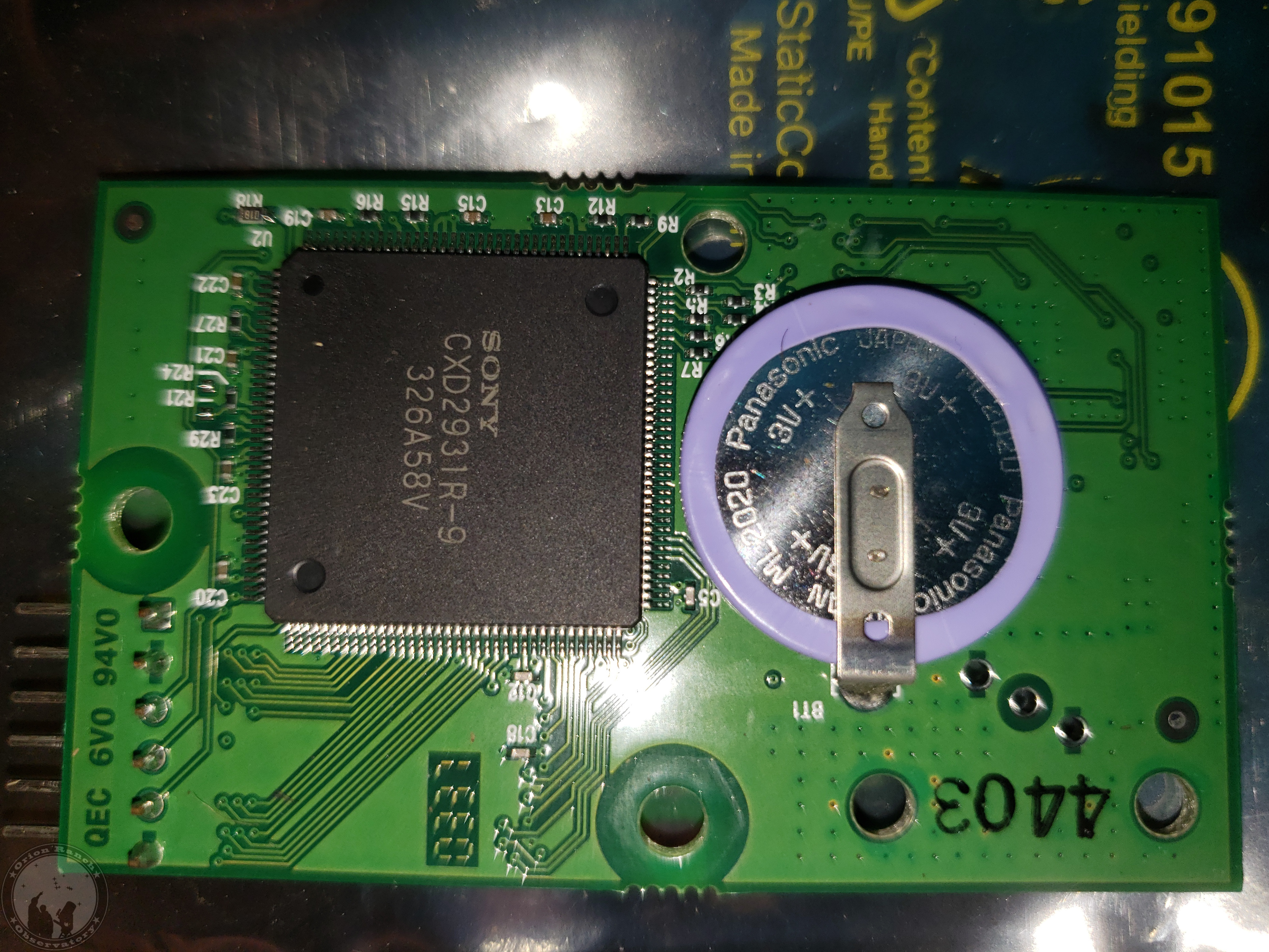 Back side of the GPS board after removal. The rechargeable battery that sometimes goes bad is visible on the right.