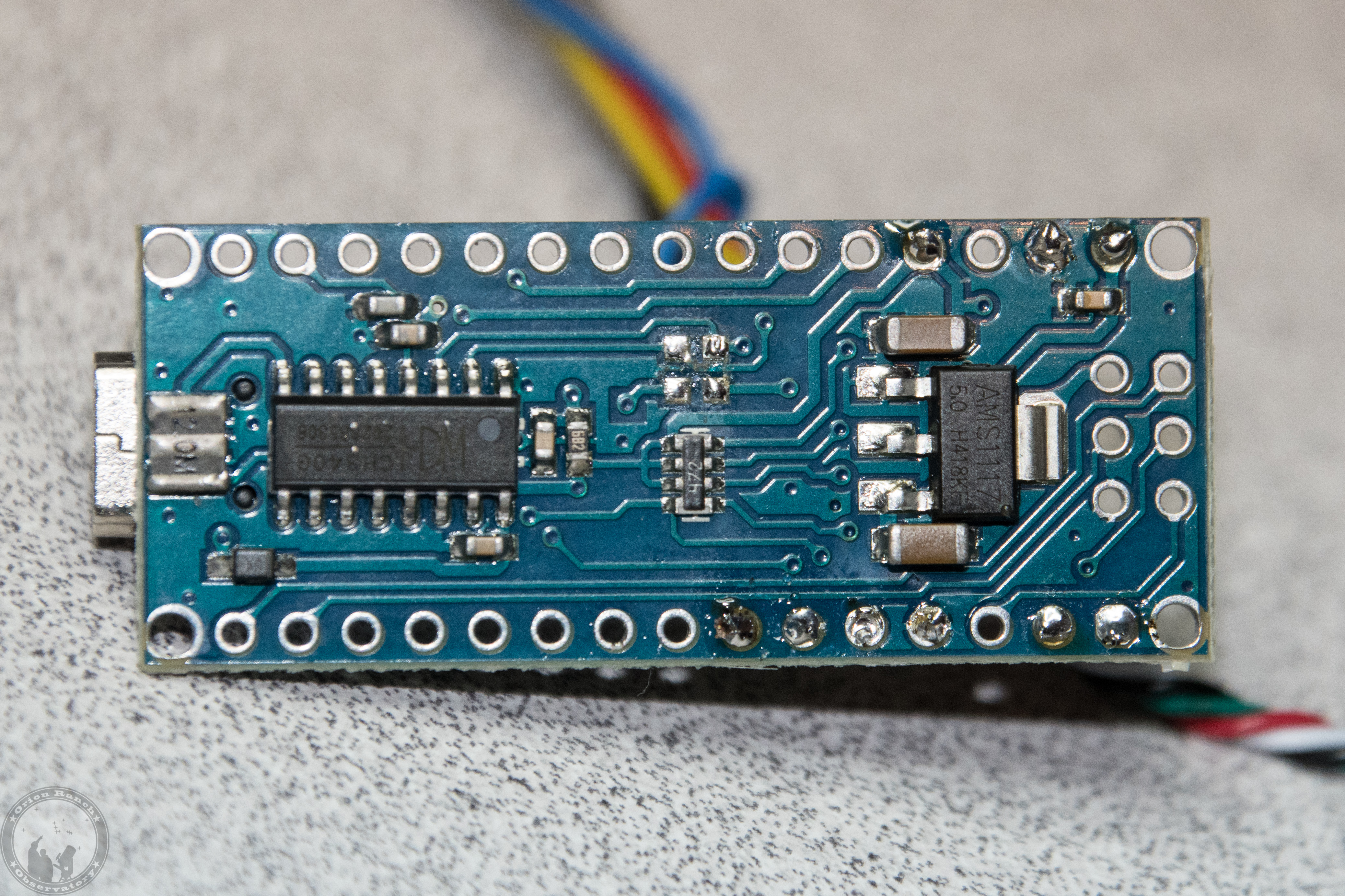 Note the two resistors that were removed to disconnect the CH340 USB to serial adapter from the Atmega microcontroller. Be sure to have programmed the board with the