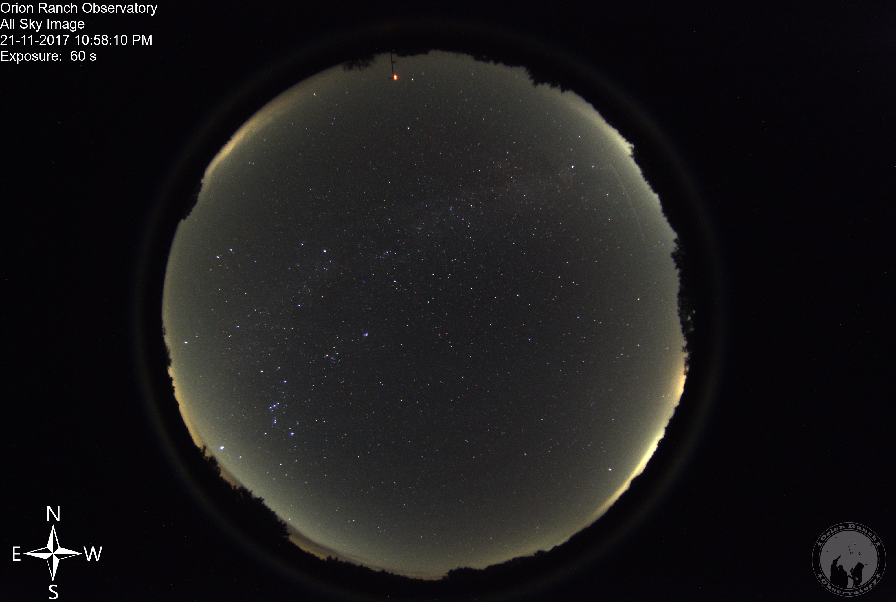 Trying to get a true all-sky view, I bougt a cheap security camera fish-eye that gets me the full 360 degree horizon field of view. Focus is a bit soft around the edges, but what do you expect for a $10 lens!