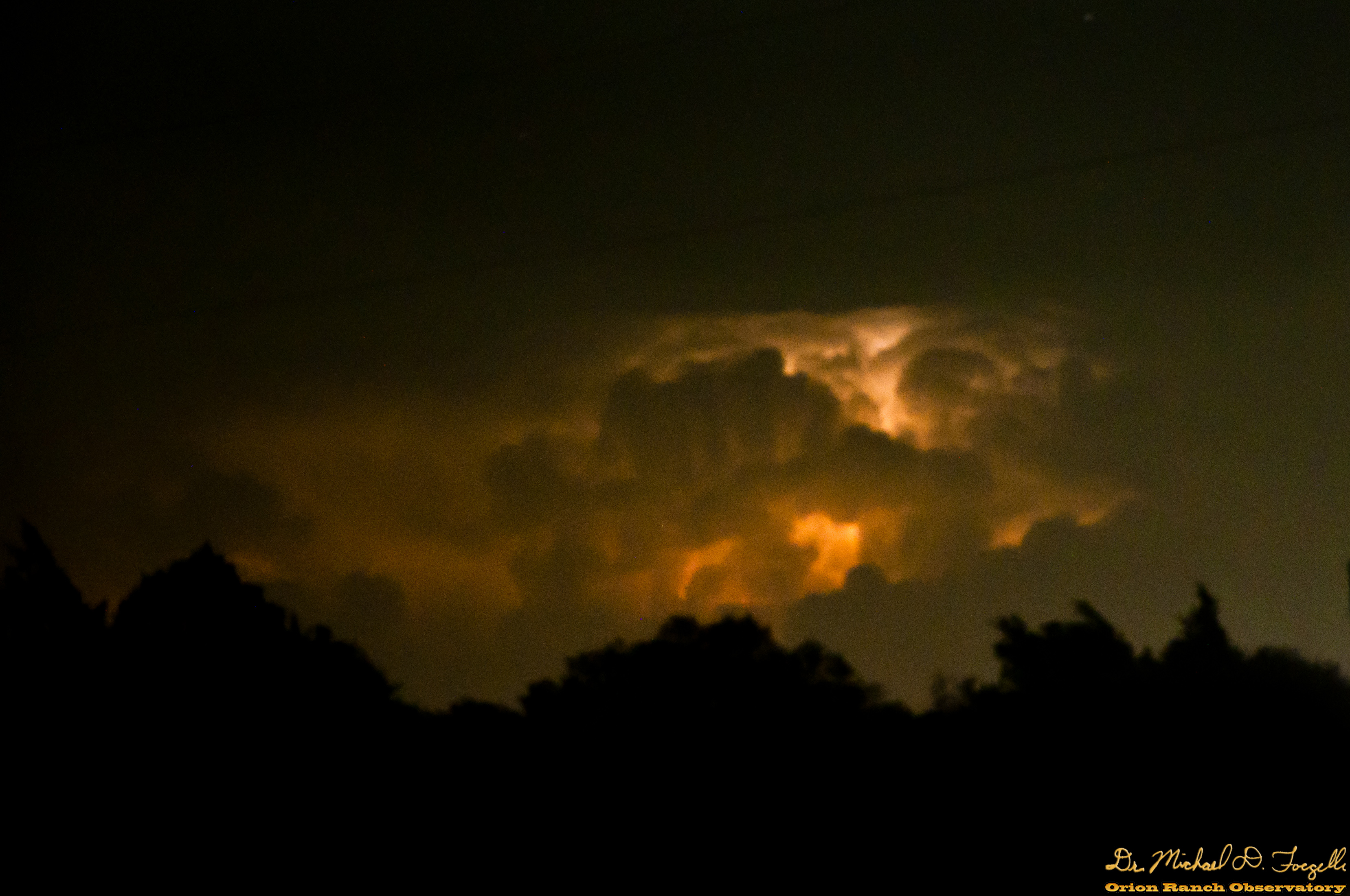One of a set of increadible heat lightning strikes without a set of clouds, highlighting a fist shaped formation in the foreground. Unfortunately most of hte images came out so grainy that the quality after processing is lost.